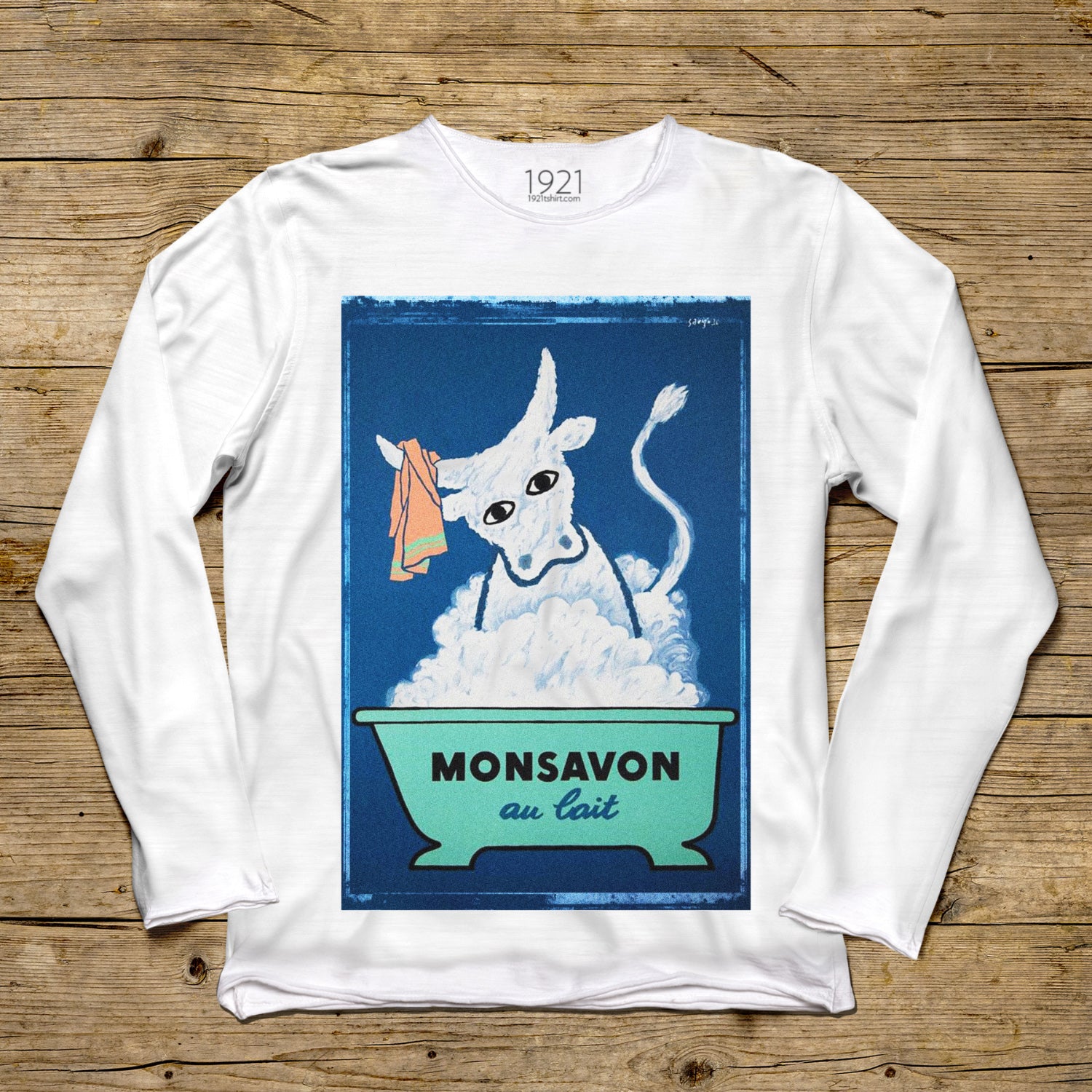 T-shirt o regularnym kroju z długim rękawem, wykonany z najwyższej jakości bawełny typu slub. Zaskakująco świeże, z wygodnym dekoltem i ozdobione efektownym nadrukiem. T-shirt jest ekskluzywny dzięki specjalnym przeszyciom przy szyi, rękawach i talii. Wyprodukowano wyłącznie we Włoszech.