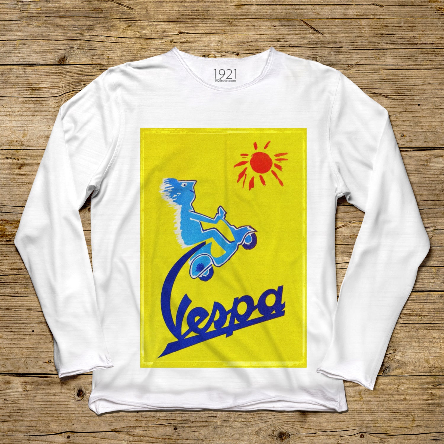 T-shirt o regularnym kroju z długim rękawem, wykonany z najwyższej jakości bawełny typu slub. Zaskakująco świeże, z wygodnym dekoltem i ozdobione efektownym nadrukiem. T-shirt jest ekskluzywny dzięki specjalnym przeszyciom przy szyi, rękawach i talii. Wyprodukowano wyłącznie we Włoszech.