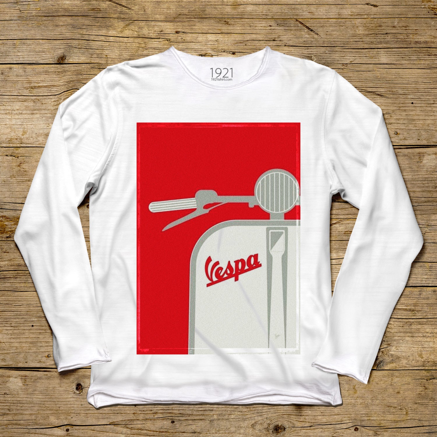 T-shirt o regularnym kroju z długim rękawem, wykonany z najwyższej jakości bawełny typu slub. Zaskakująco świeże, z wygodnym dekoltem i ozdobione efektownym nadrukiem. T-shirt jest ekskluzywny dzięki specjalnym przeszyciom przy szyi, rękawach i talii. Wyprodukowano wyłącznie we Włoszech.