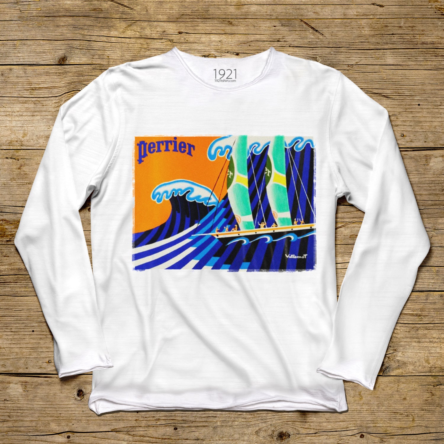 T-shirt o regularnym kroju z długim rękawem, wykonany z najwyższej jakości bawełny typu slub. Zaskakująco świeże, z wygodnym dekoltem i ozdobione efektownym nadrukiem. T-shirt jest ekskluzywny dzięki specjalnym przeszyciom przy szyi, rękawach i talii. Wyprodukowano wyłącznie we Włoszech.