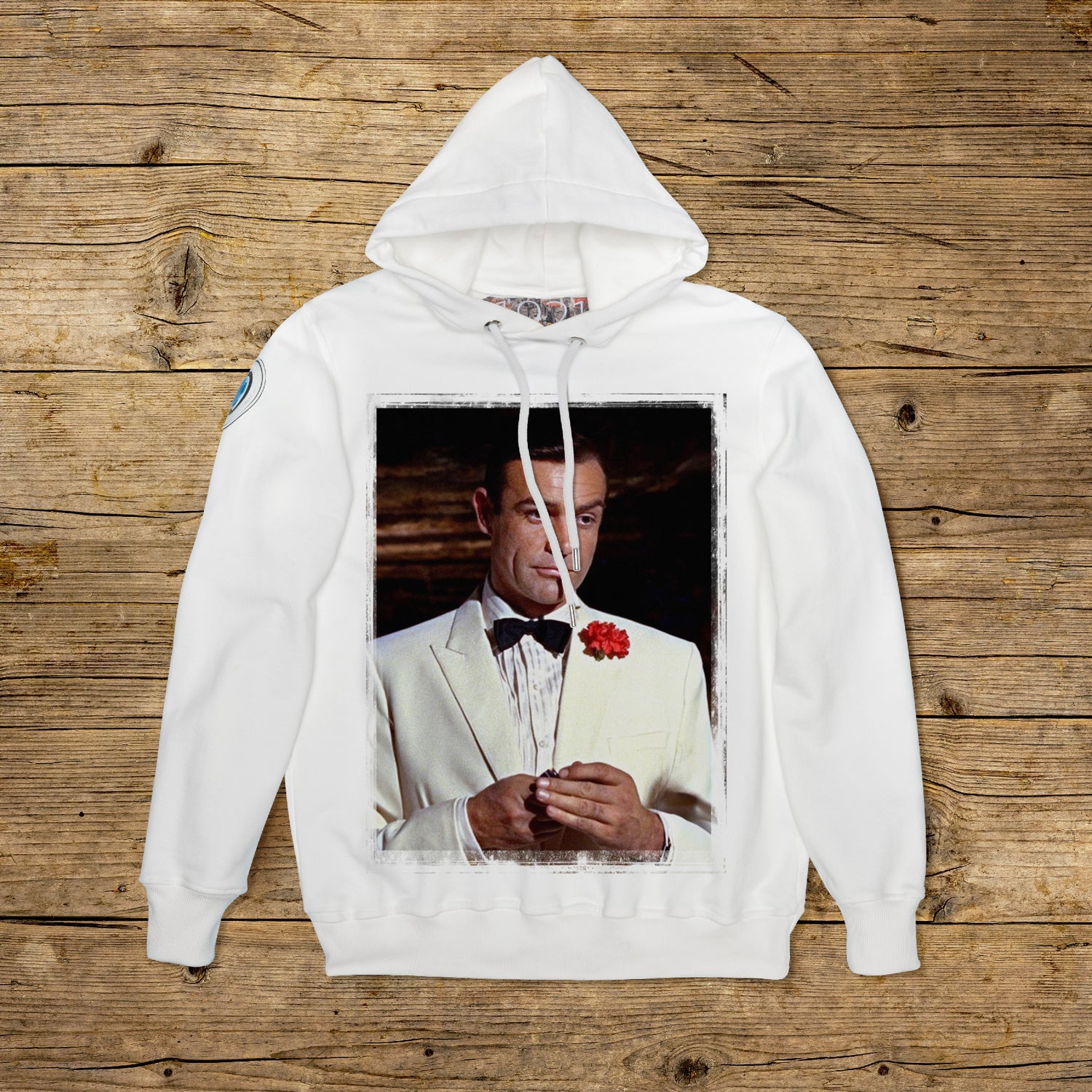 Bluza z podwójnym kapturem o regularnym kroju, wykonana z bawełny strukturalnej o dużej gramaturze, w szczególnym kolorze OFF WHITE z wysokiej jakości nadrukiem. Ubranie jest ozdobione naszywką z materiału mikrowtryskowego na prawym ramieniu, ozdobioną kultowym logo 1921 z hologramem. Model uzupełnia prążkowany kołnierzyk, mankiety i talia. Po wewnętrznej stronie szyi naszyta duża żakardowa metka. Oczka cięgien maski są wykonane z pogrubionej stali, podobnie jak końcówka spersonalizowanego sznurka z 1921 r., wyprodukowanego wyłącznie we Włoszech.