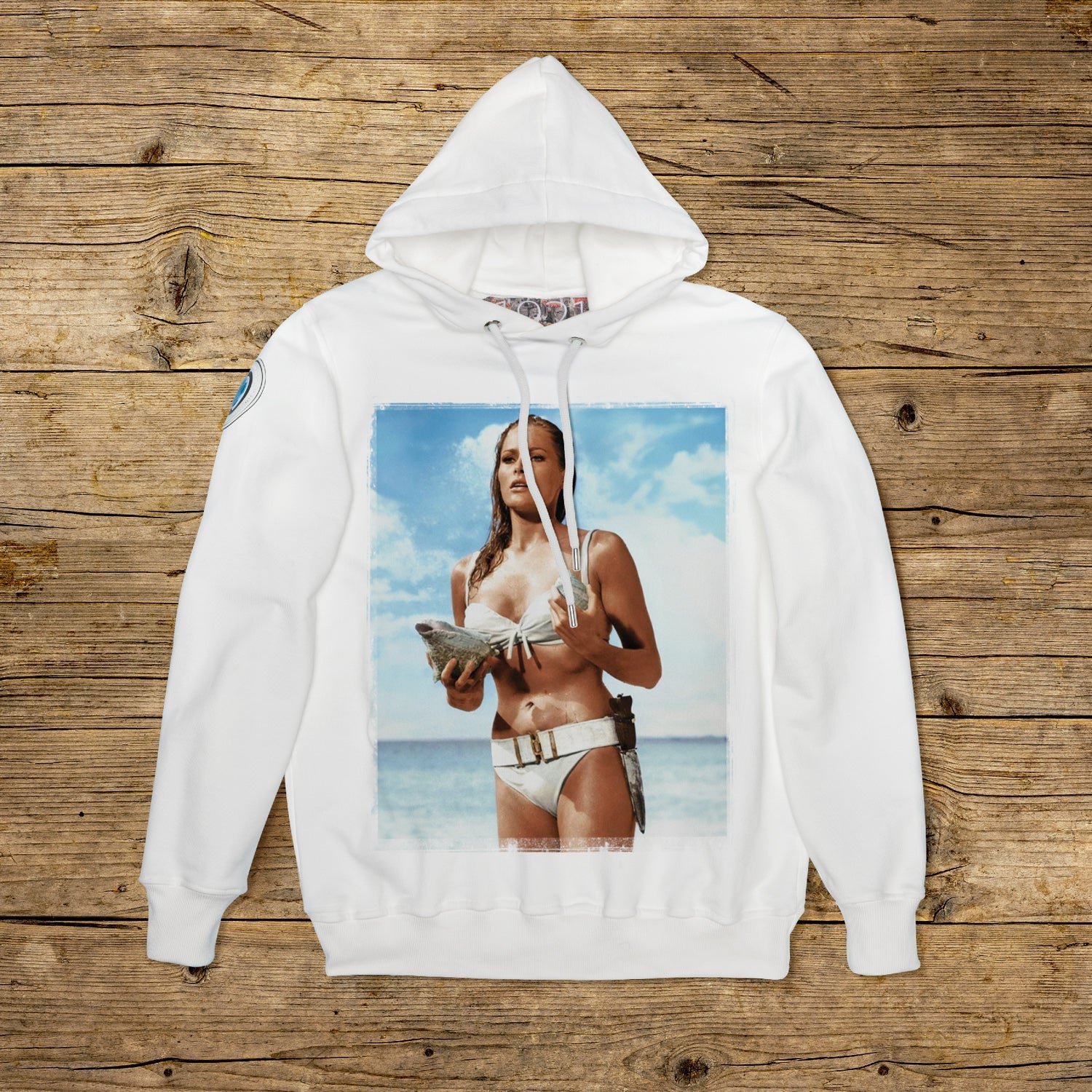 Bluza z podwójnym kapturem o regularnym kroju, wykonana z bawełny strukturalnej o dużej gramaturze, w szczególnym kolorze OFF WHITE z wysokiej jakości nadrukiem. Ubranie jest ozdobione naszywką z materiału mikrowtryskowego na prawym ramieniu, ozdobioną kultowym logo 1921 z hologramem. Model uzupełnia prążkowany kołnierzyk, mankiety i talia. Po wewnętrznej stronie szyi naszyta duża żakardowa metka. Oczka cięgien maski są wykonane z pogrubionej stali, podobnie jak końcówka spersonalizowanego sznurka z 1921 r., wyprodukowanego wyłącznie we Włoszech.