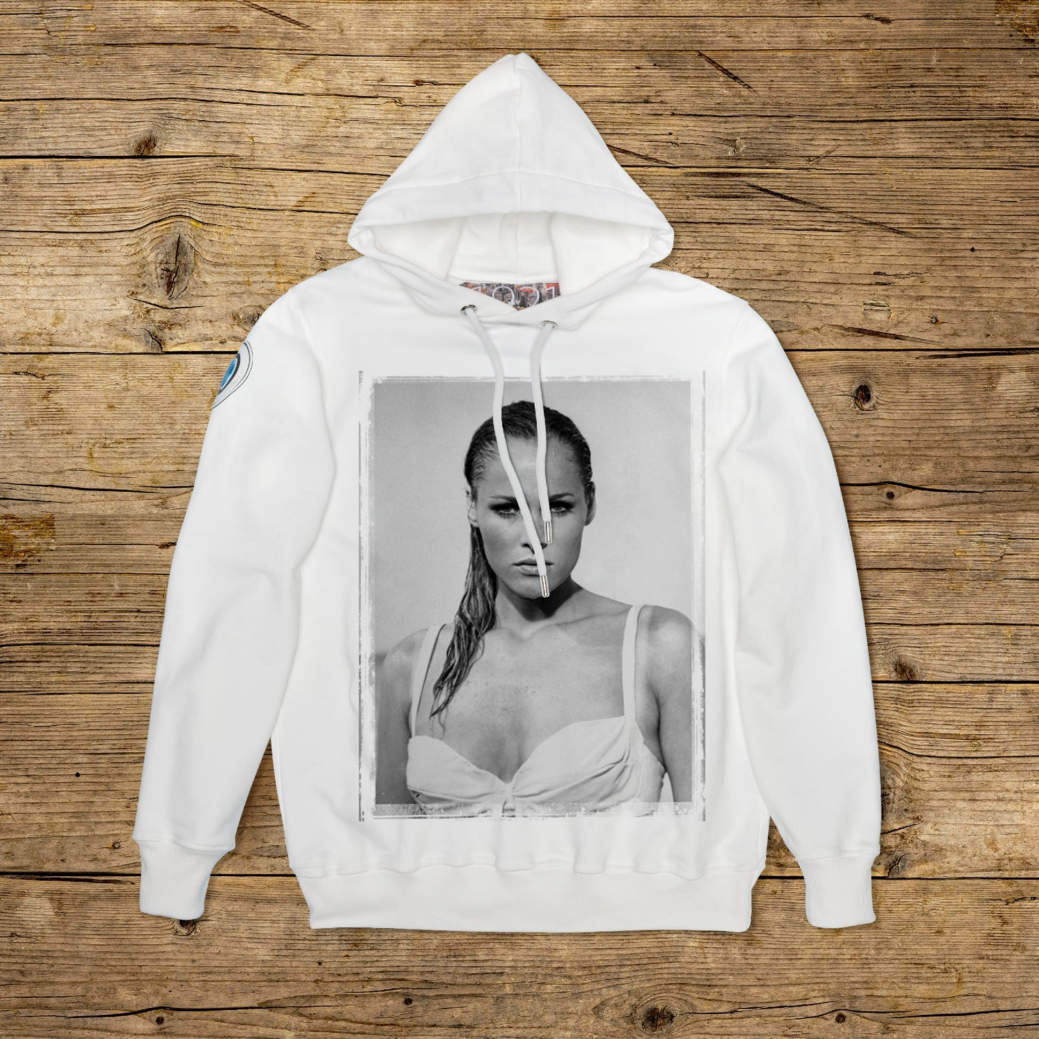 Bluza z podwójnym kapturem o regularnym kroju, wykonana z bawełny strukturalnej o dużej gramaturze, w szczególnym kolorze OFF WHITE z wysokiej jakości nadrukiem. Ubranie jest ozdobione naszywką z materiału mikrowtryskowego na prawym ramieniu, ozdobioną kultowym logo 1921 z hologramem. Model uzupełnia prążkowany kołnierzyk, mankiety i talia. Po wewnętrznej stronie szyi naszyta duża żakardowa metka. Oczka cięgien maski są wykonane z pogrubionej stali, podobnie jak końcówka spersonalizowanego sznurka z 1921 r., wyprodukowanego wyłącznie we Włoszech.
