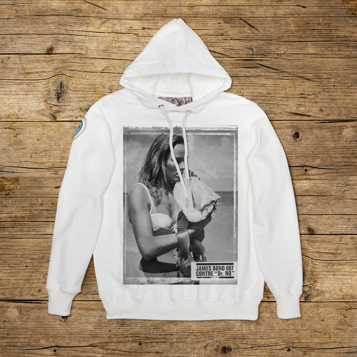 Bluza z podwójnym kapturem o regularnym kroju, wykonana z bawełny strukturalnej o dużej gramaturze, w szczególnym kolorze OFF WHITE z wysokiej jakości nadrukiem. Ubranie jest ozdobione naszywką z materiału mikrowtryskowego na prawym ramieniu, ozdobioną kultowym logo 1921 z hologramem. Model uzupełnia prążkowany kołnierzyk, mankiety i talia. Po wewnętrznej stronie szyi naszyta duża żakardowa metka. Oczka cięgien maski są wykonane z pogrubionej stali, podobnie jak końcówka spersonalizowanego sznurka z 1921 r., wyprodukowanego wyłącznie we Włoszech.
