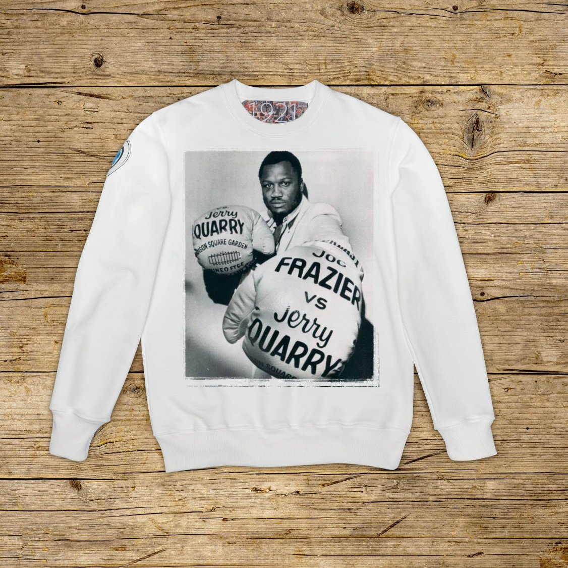 Bluza z okrągłym dekoltem o regularnym kroju, wykonana z bawełny strukturalnej o dużej gramaturze, w szczególnym kolorze OFF WHITE z wysokiej jakości nadrukiem. Ubranie jest ozdobione naszywką z materiału mikrowtryskowego na prawym ramieniu, ozdobioną kultowym logo 1921 z hologramem. Model uzupełnia prążkowany kołnierzyk, mankiety i talia. Po wewnętrznej stronie szyi naszyta duża żakardowa metka. Wyprodukowano wyłącznie we Włoszech