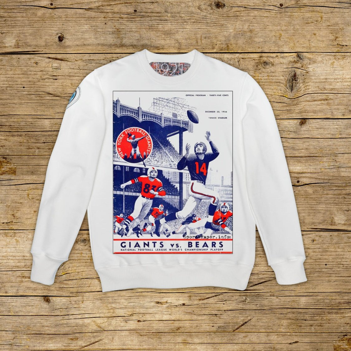 Bluza z okrągłym dekoltem o regularnym kroju, wykonana z bawełny strukturalnej o dużej gramaturze, w szczególnym kolorze OFF WHITE z wysokiej jakości nadrukiem. Ubranie jest ozdobione naszywką z materiału mikrowtryskowego na prawym ramieniu, ozdobioną kultowym logo 1921 z hologramem. Model uzupełnia prążkowany kołnierzyk, mankiety i talia. Po wewnętrznej stronie szyi naszyta duża żakardowa metka. Wyprodukowano wyłącznie we Włoszech