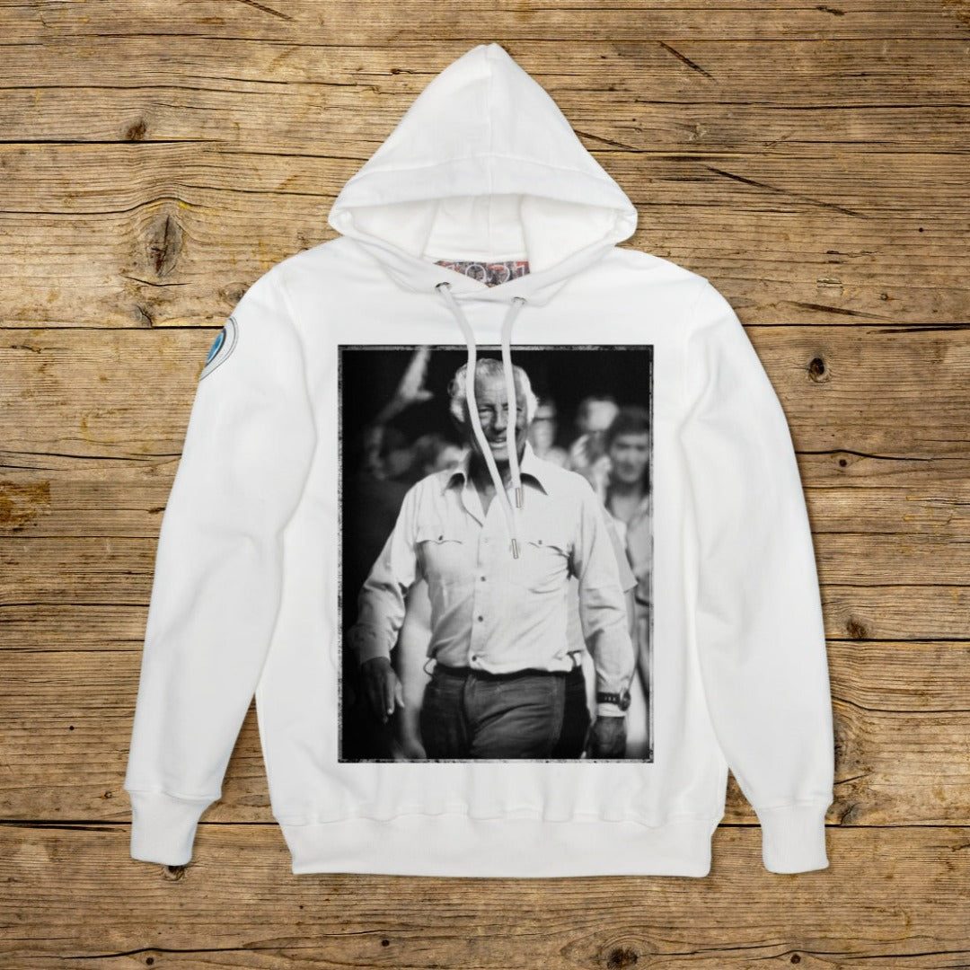 Bluza z podwójnym kapturem o regularnym kroju, wykonana z bawełny strukturalnej o dużej gramaturze, w szczególnym kolorze OFF WHITE z wysokiej jakości nadrukiem. Ubranie jest ozdobione naszywką z materiału mikrowtryskowego na prawym ramieniu, ozdobioną kultowym logo 1921 z hologramem. Model uzupełnia prążkowany kołnierzyk, mankiety i talia. Po wewnętrznej stronie szyi naszyta duża żakardowa metka. Oczka cięgien maski są wykonane z pogrubionej stali, podobnie jak końcówka spersonalizowanego sznurka z 1921 r. Wyprodukowano wyłącznie we Włoszech