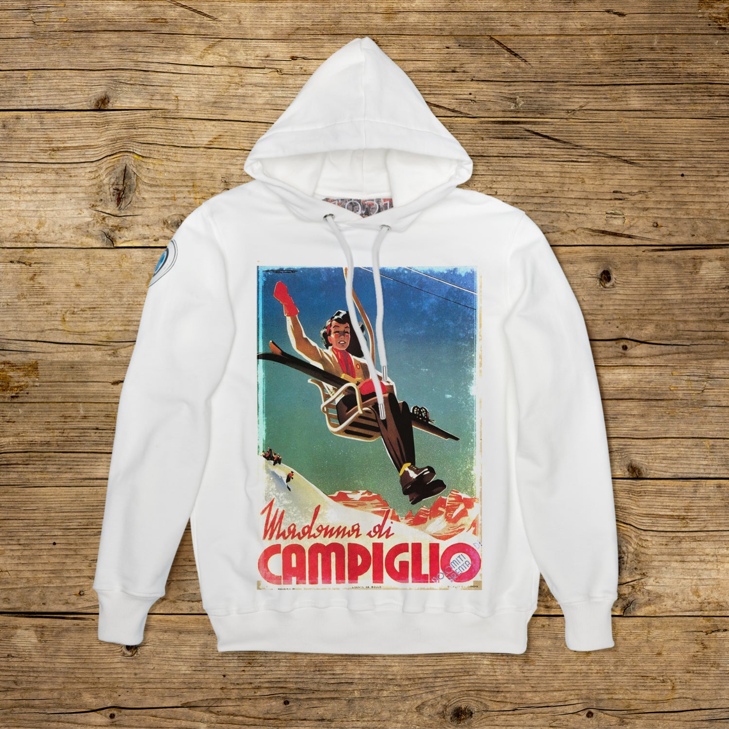 Felpa con cappuccio doppiato dalla vestibilità regolare realizzata in cotone strutturato dalla grammatura importante, nella particolare colorazione OFF WHITE con stampa di alta qualità. Il capo è impreziosito da una PATCH in materiale microiniezione sulla spalla destra riportante l' iconico logo 1921 con ologramma. Il modello è completato da collo, polsini e vita a coste. Un' etichetta di grandi dimensioni in jacquard è applicata all'interno del collo. Gli occhielli dei tiranti del cappuccio sono in acciaio spessorato così come il finale del cordoncino personalizzato 1921. Rigorosamente made in Italy.