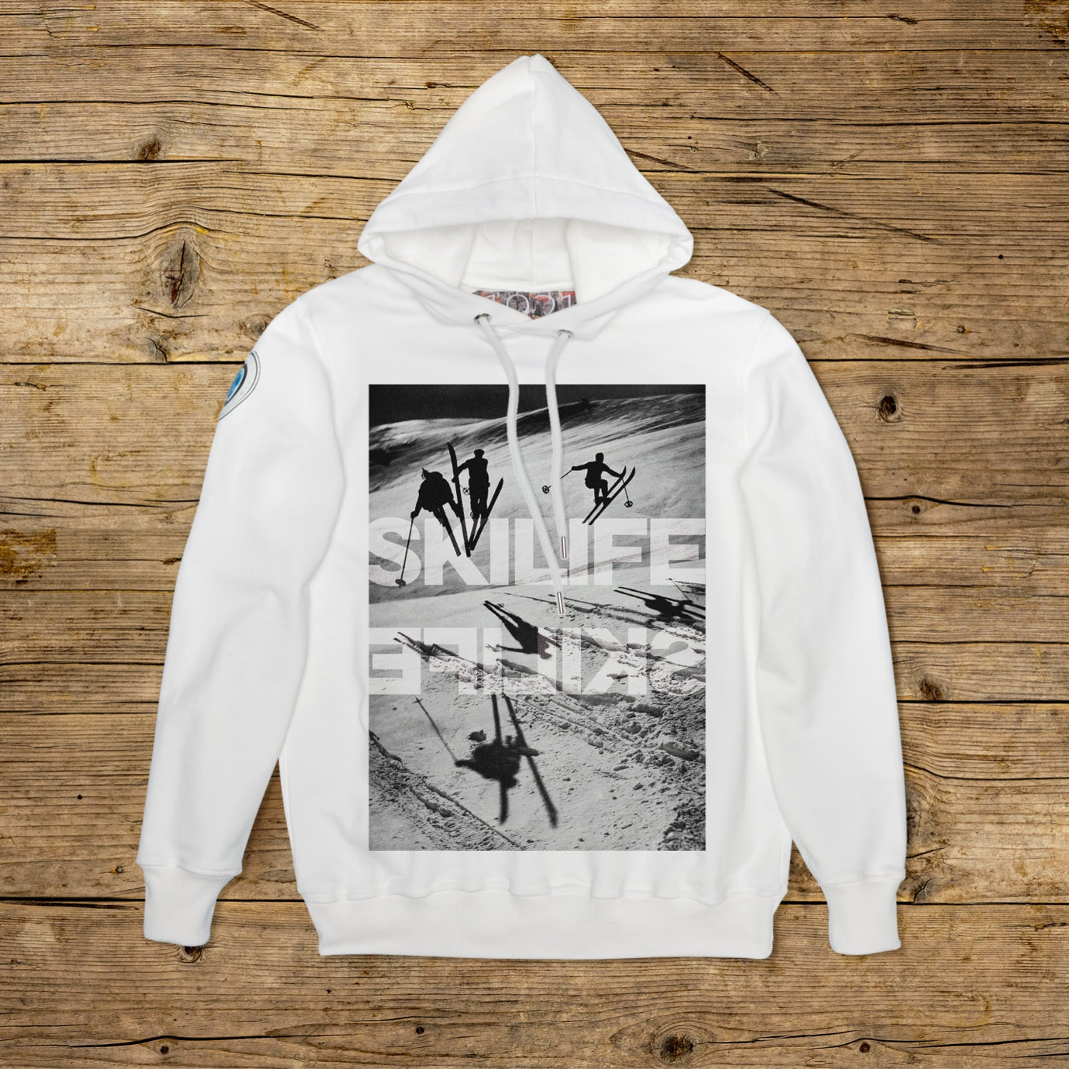 Felpa con cappuccio doppiato dalla vestibilità regolare realizzata in cotone strutturato dalla grammatura importante, nella particolare colorazione OFF WHITE con stampa di alta qualità. Il capo è impreziosito da una PATCH in materiale microiniezione sulla spalla destra riportante l' iconico logo 1921 con ologramma. Il modello è completato da collo, polsini e vita a coste. Un' etichetta di grandi dimensioni in jacquard è applicata all'interno del collo. Gli occhielli dei tiranti del cappuccio sono in acciaio spessorato così come il finale del cordoncino personalizzato 1921. Rigorosamente made in Italy.
