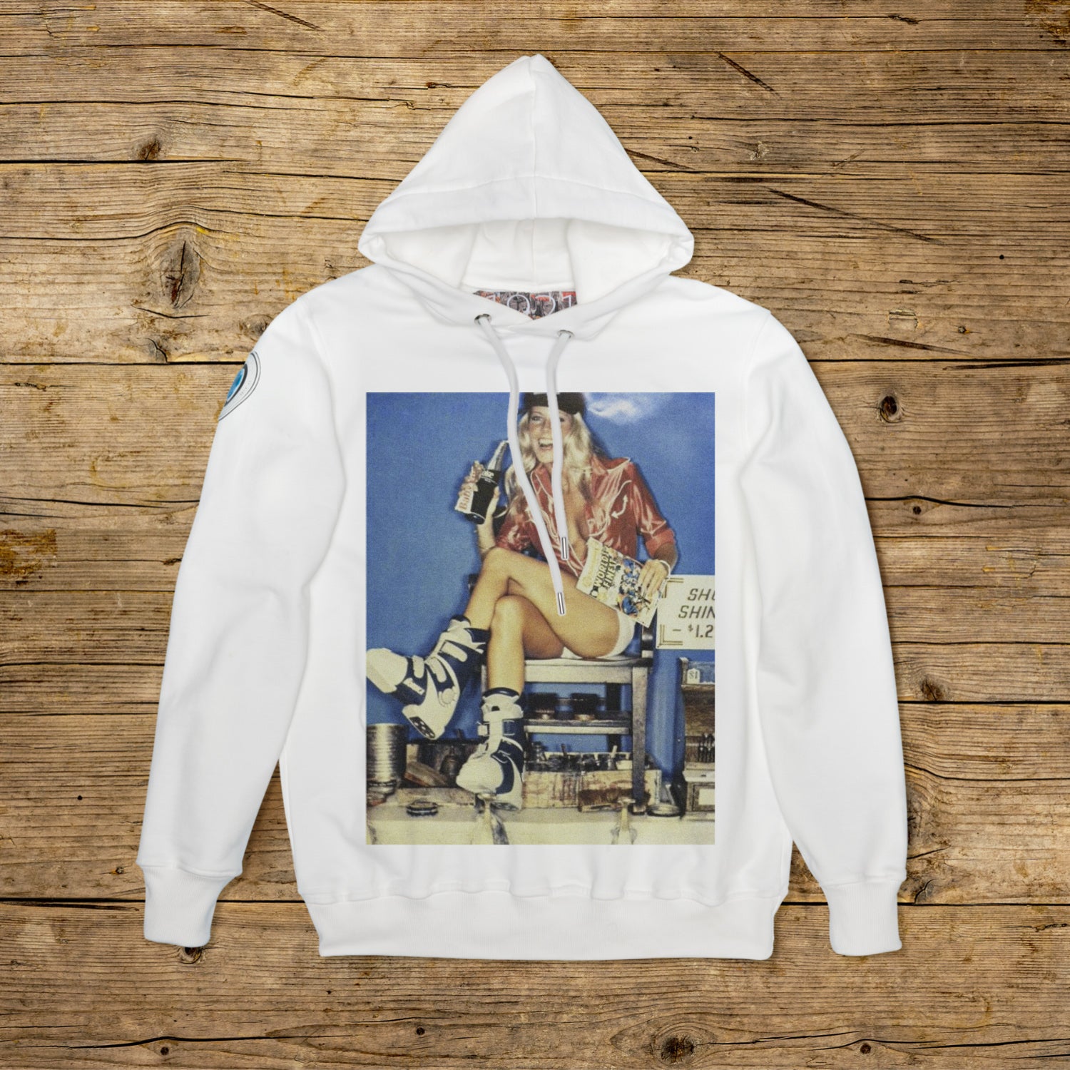 Felpa con cappuccio doppiato dalla vestibilità regolare realizzata in cotone strutturato dalla grammatura importante, nella particolare colorazione OFF WHITE con stampa di alta qualità. Il capo è impreziosito da una PATCH in materiale microiniezione sulla spalla destra riportante l' iconico logo 1921 con ologramma. Il modello è completato da collo, polsini e vita a coste. Un' etichetta di grandi dimensioni in jacquard è applicata all'interno del collo. Gli occhielli dei tiranti del cappuccio sono in acciaio spessorato così come il finale del cordoncino personalizzato 1921. Rigorosamente made in Italy.