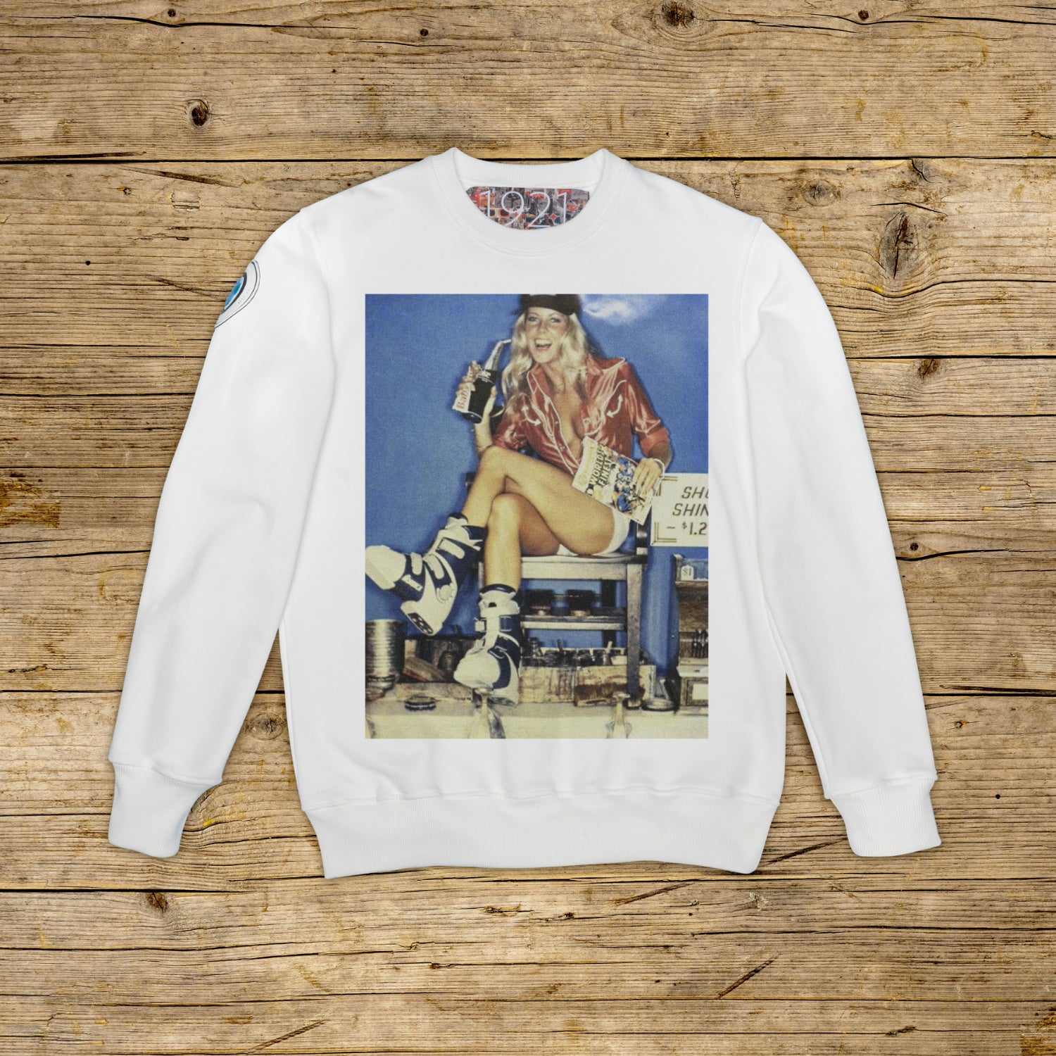 Felpa girocollo dalla vestibilità regolare realizzata in cotone strutturato dalla grammatura importante, nella particolare colorazione OFF WHITE con stampa di alta qualità. Il capo è impreziosito da una PATCH in materiale microiniezione sulla spalla destra riportante l' iconico logo 1921 con ologramma. Il modello è completato da collo, polsini e vita a coste. Un' etichetta di grandi dimensioni in jacquard è applicata all'interno del collo. Rigorosamente made in Italy.