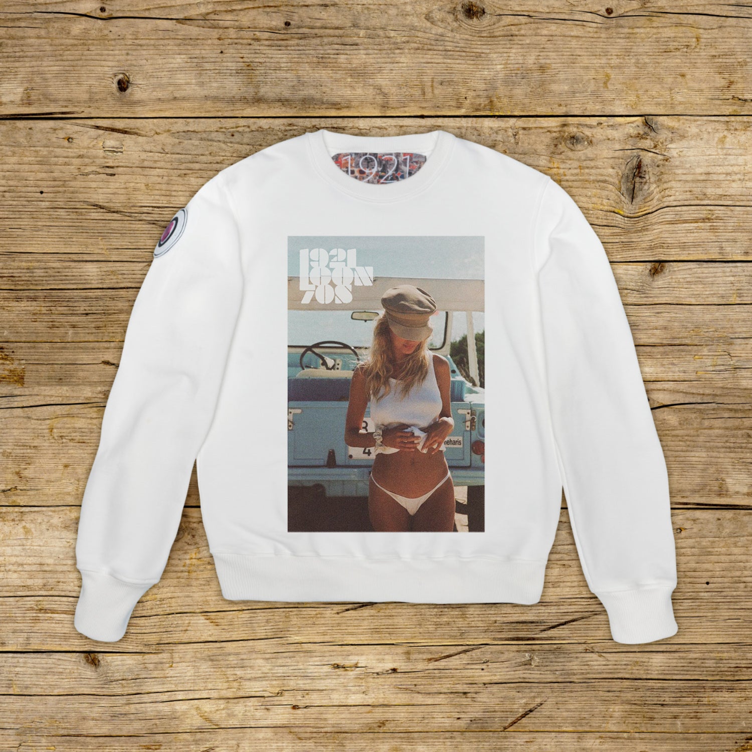 Moletom de gola redonda de corte regular confeccionado em algodão estruturado de alta gramatura, na cor particular OFF WHITE com estampa de alta qualidade. A peça é embelezada com um PATCH em material de microinjeção no ombro direito com o icônico logotipo 1921 com holograma. O modelo é completado por gola, punhos e cintura canelados. Uma grande etiqueta jacquard é aplicada na parte interna do pescoço. Fabricado estritamente na Itália.