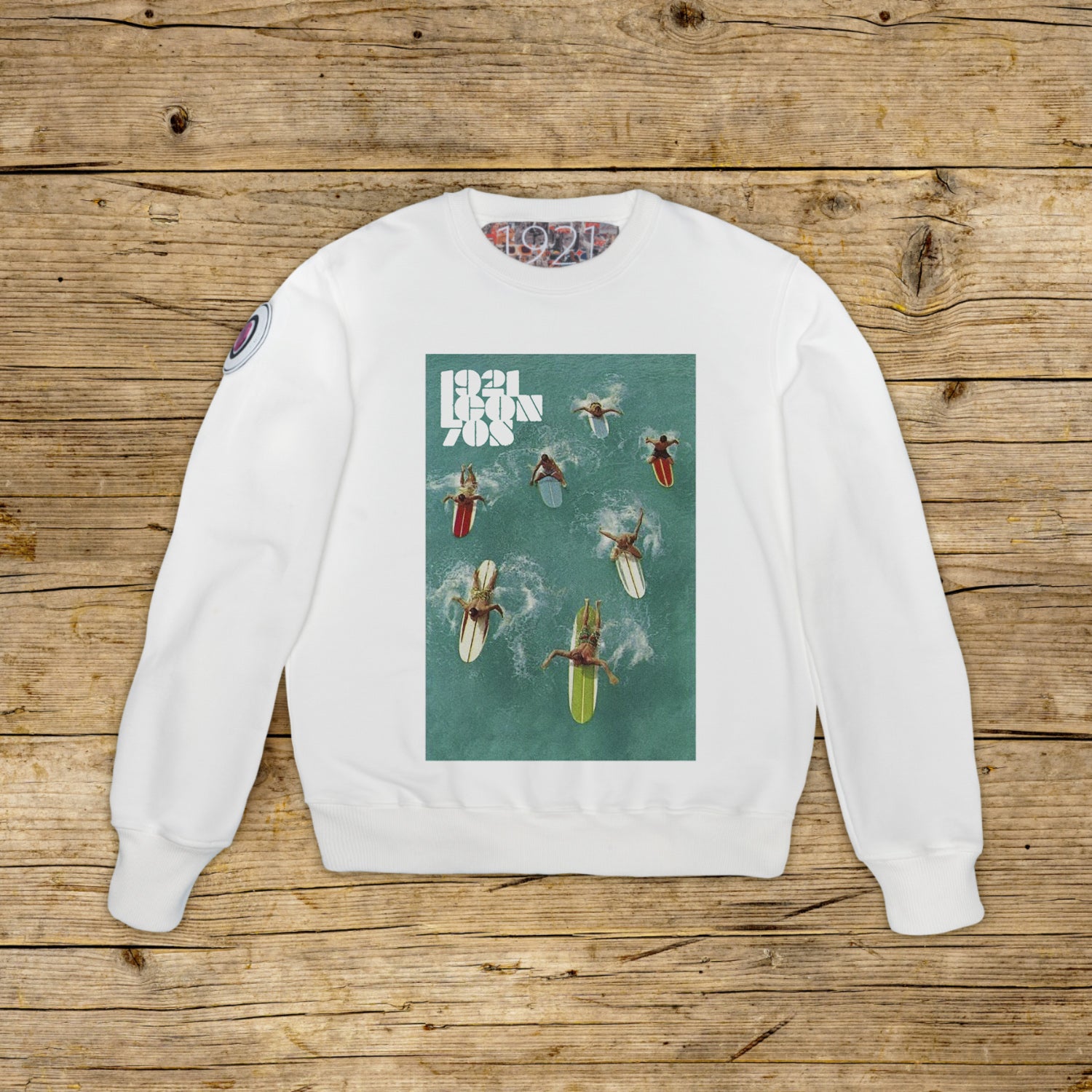 Moletom de gola redonda de corte regular confeccionado em algodão estruturado de alta gramatura, na cor particular OFF WHITE com estampa de alta qualidade. A peça é embelezada com um PATCH em material de microinjeção no ombro direito com o icônico logotipo 1921 com holograma. O modelo é completado por gola, punhos e cintura canelados. Uma grande etiqueta jacquard é aplicada na parte interna do pescoço. Fabricado estritamente na Itália.