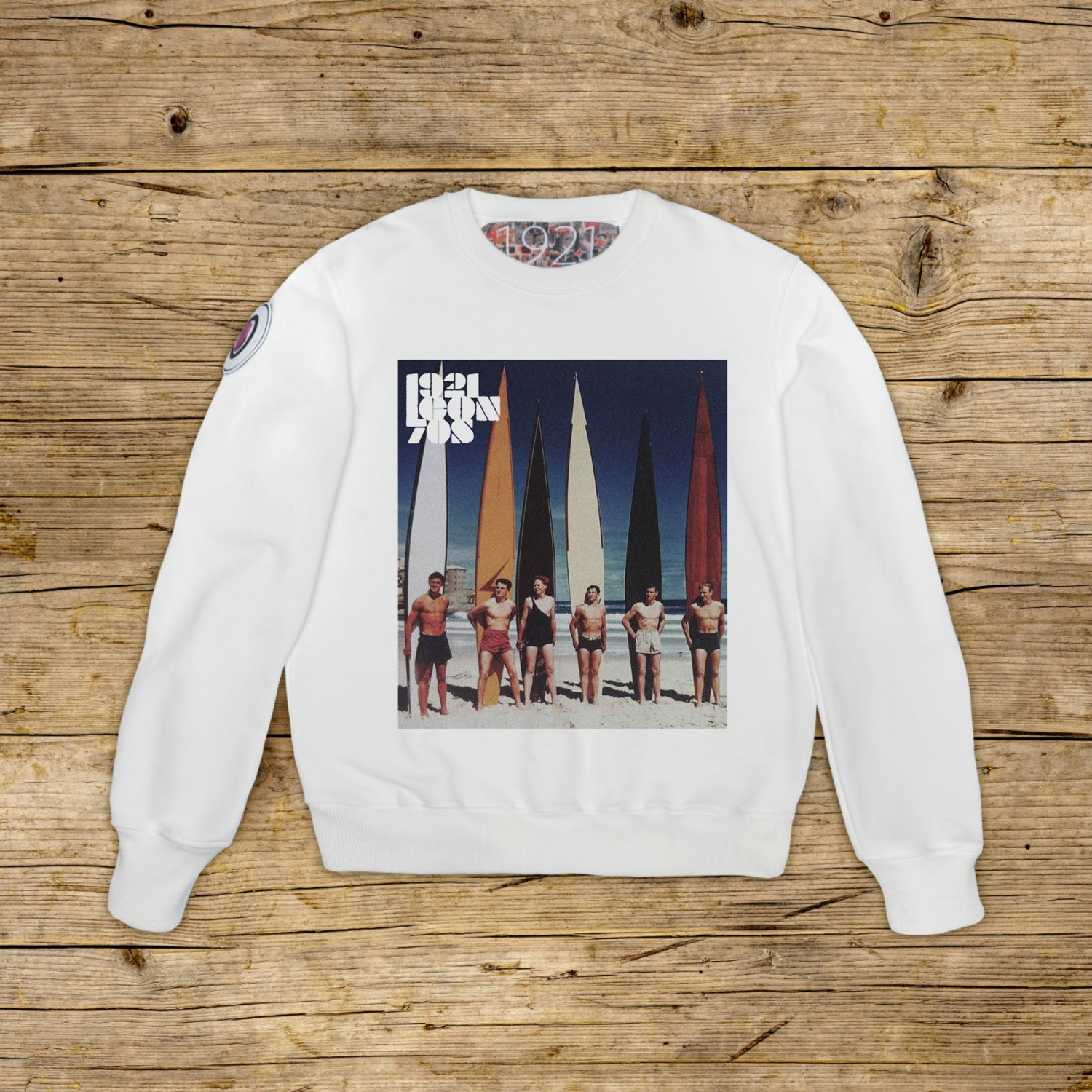 Moletom de gola redonda de corte regular confeccionado em algodão estruturado de alta gramatura, na cor particular OFF WHITE com estampa de alta qualidade. A peça é embelezada com um PATCH em material de microinjeção no ombro direito com o icônico logotipo 1921 com holograma. O modelo é completado por gola, punhos e cintura canelados. Uma grande etiqueta jacquard é aplicada na parte interna do pescoço. Fabricado estritamente na Itália.