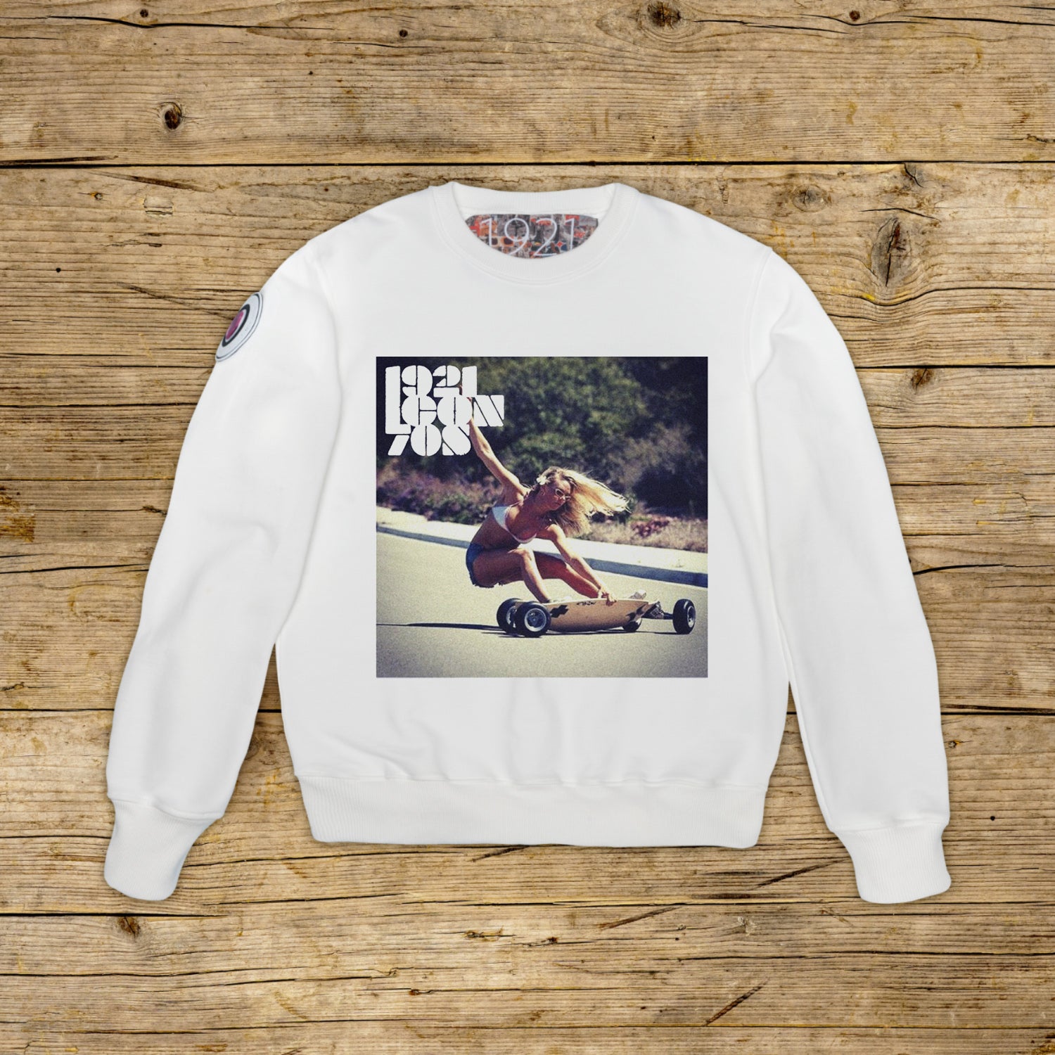Moletom de gola redonda de corte regular confeccionado em algodão estruturado de alta gramatura, na cor particular OFF WHITE com estampa de alta qualidade. A peça é embelezada com um PATCH em material de microinjeção no ombro direito com o icônico logotipo 1921 com holograma. O modelo é completado por gola, punhos e cintura canelados. Uma grande etiqueta jacquard é aplicada na parte interna do pescoço. Fabricado estritamente na Itália.