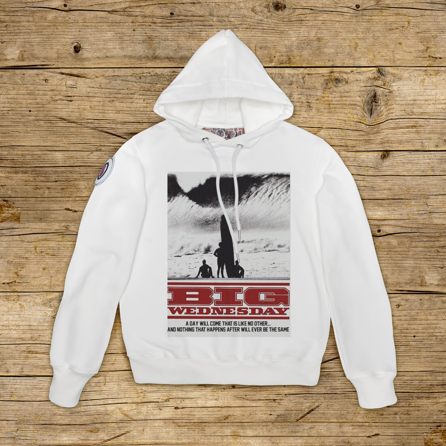 Moletom com capuz duplo e corte regular confeccionado em algodão estruturado de alta gramatura, na cor particular OFF WHITE com estampa de alta qualidade. A peça é embelezada com um PATCH em material de microinjeção no ombro direito com o icônico logotipo 1921 com holograma. O modelo é completado por gola, punhos e cintura canelados. Uma grande etiqueta jacquard é aplicada na parte interna do pescoço. Os ilhós dos tirantes do capô são em aço espesso, assim como a extremidade do cordão personalizado de 1921, estritamente fabricado na Itália.