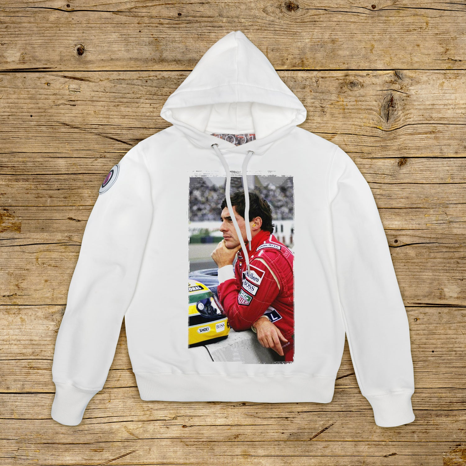 Moletom com capuz duplo e corte regular confeccionado em algodão estruturado de alta gramatura, na cor particular OFF WHITE com estampa de alta qualidade. A peça é embelezada com um PATCH em material de microinjeção no ombro direito com o icônico logotipo 1921 com holograma. O modelo é completado por gola, punhos e cintura canelados. Uma grande etiqueta jacquard é aplicada na parte interna do pescoço. Os ilhós dos tirantes do capô são feitos de aço espesso, assim como a extremidade do cordão personalizado de 1921, estritamente fabricado na Itália.