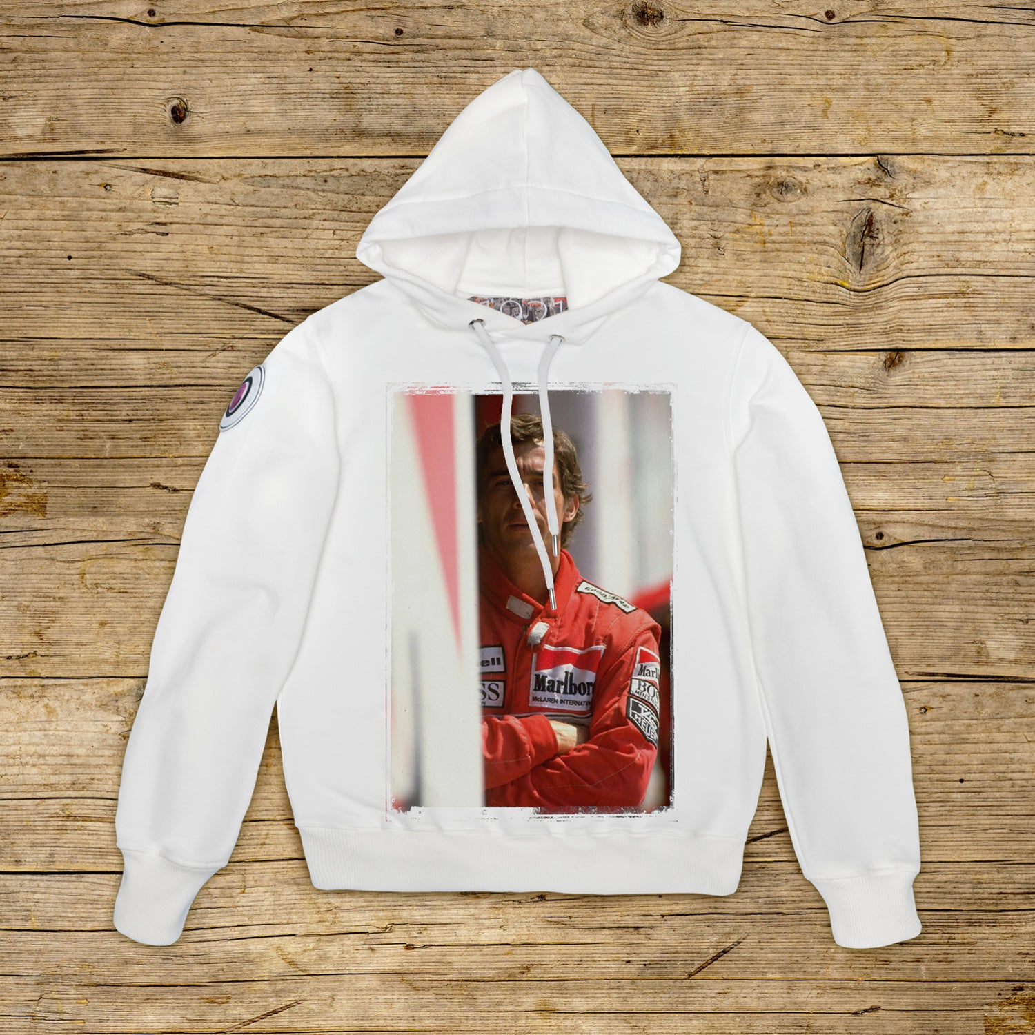 Moletom com capuz duplo e corte regular confeccionado em algodão estruturado de alta gramatura, na cor particular OFF WHITE com estampa de alta qualidade. A peça é embelezada com um PATCH em material de microinjeção no ombro direito com o icônico logotipo 1921 com holograma. O modelo é completado por gola, punhos e cintura canelados. Uma grande etiqueta jacquard é aplicada na parte interna do pescoço. Os ilhós dos tirantes do capô são feitos de aço espesso, assim como a extremidade do cordão personalizado de 1921, estritamente fabricado na Itália.