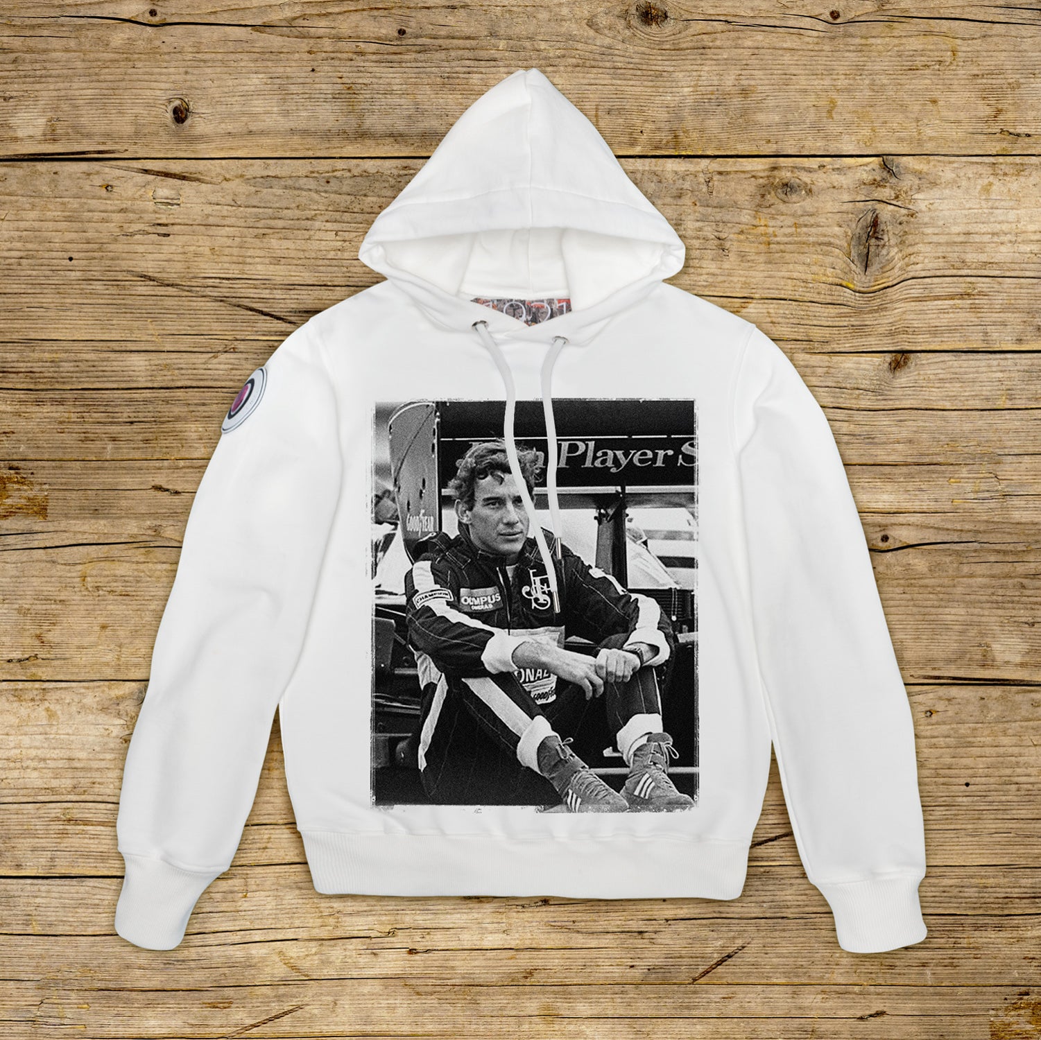 Moletom com capuz duplo e corte regular confeccionado em algodão estruturado de alta gramatura, na cor particular OFF WHITE com estampa de alta qualidade. A peça é embelezada com um PATCH em material de microinjeção no ombro direito com o icônico logotipo 1921 com holograma. O modelo é completado por gola, punhos e cintura canelados. Uma grande etiqueta jacquard é aplicada na parte interna do pescoço. Os ilhós dos tirantes do capô são feitos de aço espesso, assim como a extremidade do cordão personalizado de 1921, estritamente fabricado na Itália.