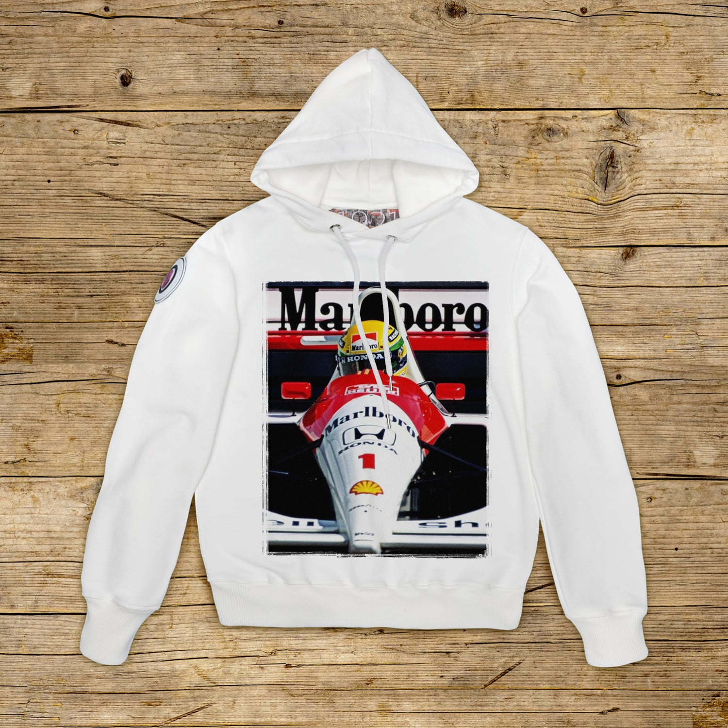 Moletom com capuz duplo e corte regular confeccionado em algodão estruturado de alta gramatura, na cor particular OFF WHITE com estampa de alta qualidade. A peça é embelezada com um PATCH em material de microinjeção no ombro direito com o icônico logotipo 1921 com holograma. O modelo é completado por gola, punhos e cintura canelados. Uma grande etiqueta jacquard é aplicada na parte interna do pescoço. Os ilhós dos tirantes do capô são feitos de aço espesso, assim como a extremidade do cordão personalizado de 1921, estritamente fabricado na Itália.