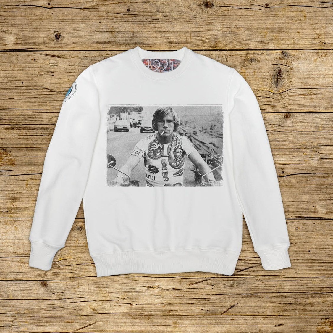 Moletom de gola redonda de corte regular confeccionado em algodão estruturado de alta gramatura, na cor particular OFF WHITE com estampa de alta qualidade. A peça é embelezada com um PATCH em material de microinjeção no ombro direito com o icônico logotipo 1921 com holograma. O modelo é completado por gola, punhos e cintura canelados. Uma grande etiqueta jacquard é aplicada na parte interna do pescoço. Fabricado estritamente na Itália