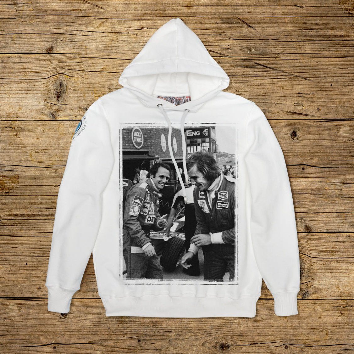 Moletom com capuz duplo e corte regular confeccionado em algodão estruturado de alta gramatura, na cor particular OFF WHITE com estampa de alta qualidade. A peça é embelezada com um PATCH em material de microinjeção no ombro direito com o icônico logotipo 1921 com holograma. O modelo é completado por gola, punhos e cintura canelados. Uma grande etiqueta jacquard é aplicada na parte interna do pescoço. Os ilhós dos tirantes do capô são feitos de aço espesso, assim como a extremidade do cordão personalizado de 1921, estritamente fabricado na Itália.