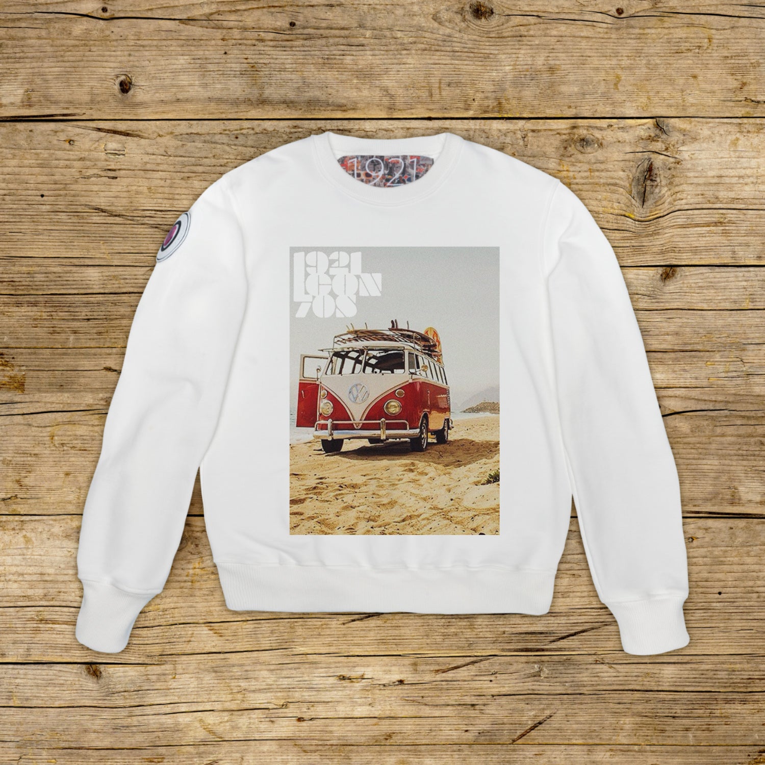 Haorac cu decolteu obișnuit, de culoare normală, din bumbac structurat cu o greutate mare, în culoarea specială OFF WHITE, cu imprimeu de înaltă calitate. Îmbrăcămintea este împodobită cu un PATCH din material micro-injectat pe umărul drept, care poartă emblematica sigla 1921 cu hologramă. Modelul este completat de guler, manșete și talie cu coaste. Pe interiorul gâtului este aplicată o etichetă mare jacquard. Produs strict în Italia.