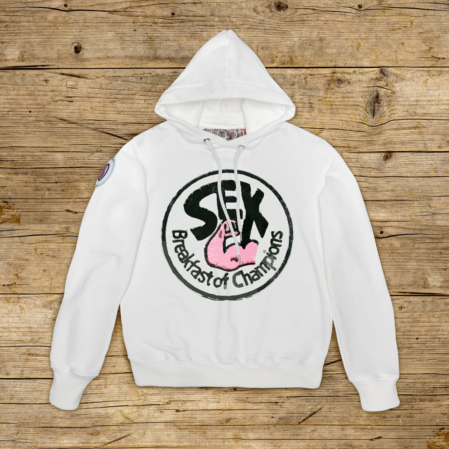 Hanorac cu glugă dublată, cu o croială regulată, realizat din bumbac texturat cu gramaj important, într-o nuanță specială OFF WHITE cu imprimare de înaltă calitate. Articolul este îmbogățit de un PATCH din material microinjectat pe umărul drept, cu logo-ul iconi 1921 și hologramă. Modelul este completat de guler, manșete și talie cu nervuri. O etichetă de mari dimensiuni, jacardată, este aplicată în interiorul gulerului. Ochii de la șireturile glugii sunt din oțel întărit, la fel ca și capetele șiretului personalizat 1921. Fabricat în Italia.