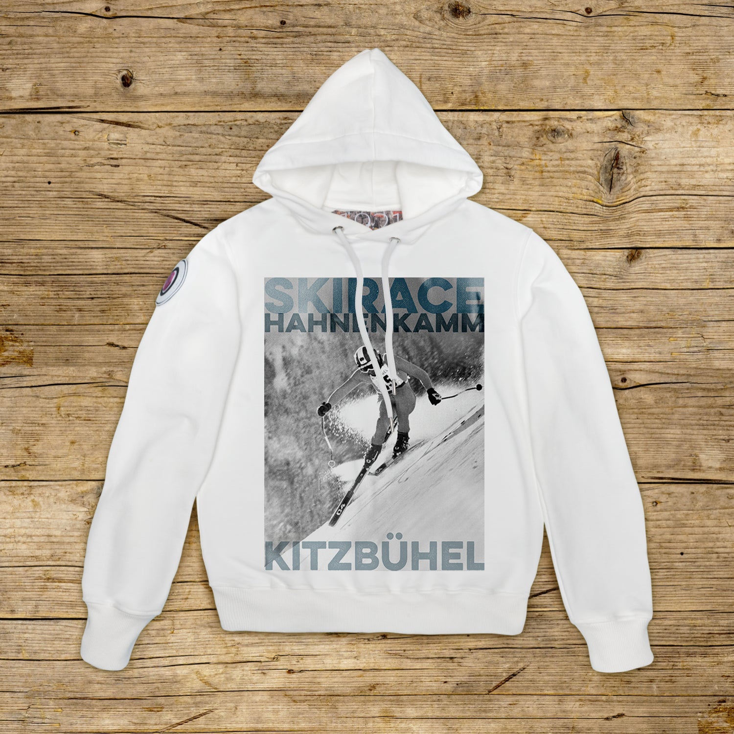 Hanorac cu glugă dublată și croială regulară, realizat din bumbac structurat, cu gramaj ridicat, în nuanța distinctivă OFF WHITE, cu imprimeu de înaltă calitate. Piesa are un PATCH din material cu microinjecție pe umărul drept, cu logoul iconic 1921 și hologramă. Guler, manșete și tiv din tricot rib. Etichetă mare jacquard la interiorul gulerului. Ocheții șnurului glugii din oțel gros și capătul personalizat 1921. Made in Italy.