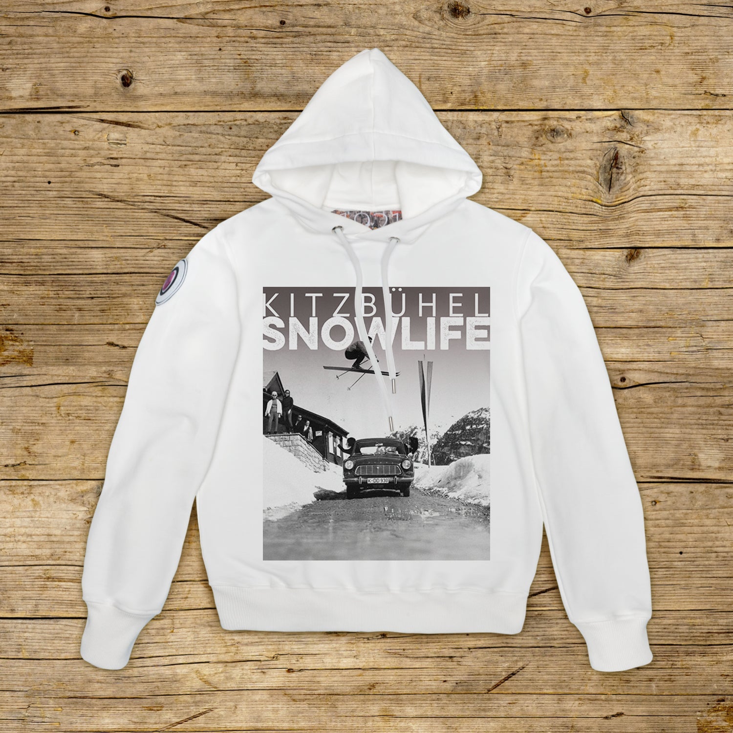 Hanorac cu glugă dublată și croială regulară, realizat din bumbac structurat, cu gramaj ridicat, în nuanța distinctivă OFF WHITE, cu imprimeu de înaltă calitate. Piesa are un PATCH din material cu microinjecție pe umărul drept, cu logoul iconic 1921 și hologramă. Guler, manșete și tiv din tricot rib. Etichetă mare jacquard la interiorul gulerului. Ocheții șnurului glugii din oțel gros și capătul personalizat 1921. Made in Italy.