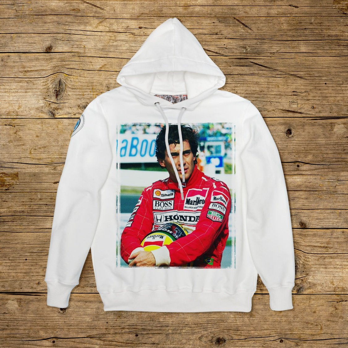 Hanorac cu glugă dublată, cu o croială regulată, realizat din bumbac texturat cu gramaj important, într-o nuanță specială OFF WHITE cu imprimare de înaltă calitate. Articolul este îmbogățit de un PATCH din material microinjectat pe umărul drept, cu logo-ul iconi 1921 și hologramă. Modelul este completat de guler, manșete și talie cu nervuri. O etichetă de mari dimensiuni, jacardată, este aplicată în interiorul gulerului. Ochii de la șireturile glugii sunt din oțel întărit, la fel ca și capetele șiretului personalizat 1921. Fabricat în Italia.