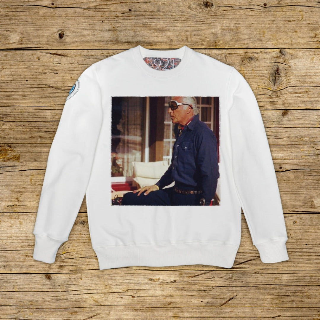 Tricou cu guler rotund, cu o croială regulată, realizat din bumbac texturat cu gramaj important, într-o nuanță specială OFF WHITE cu imprimare de înaltă calitate. Articolul este îmbogățit de un PATCH din material microinjectat pe umărul drept, cu logo-ul iconi 1921 și hologramă. Modelul este completat de guler, manșete și talie cu nervuri. O etichetă de mari dimensiuni, jacardată, este aplicată în interiorul gulerului. Fabricat în Italia.