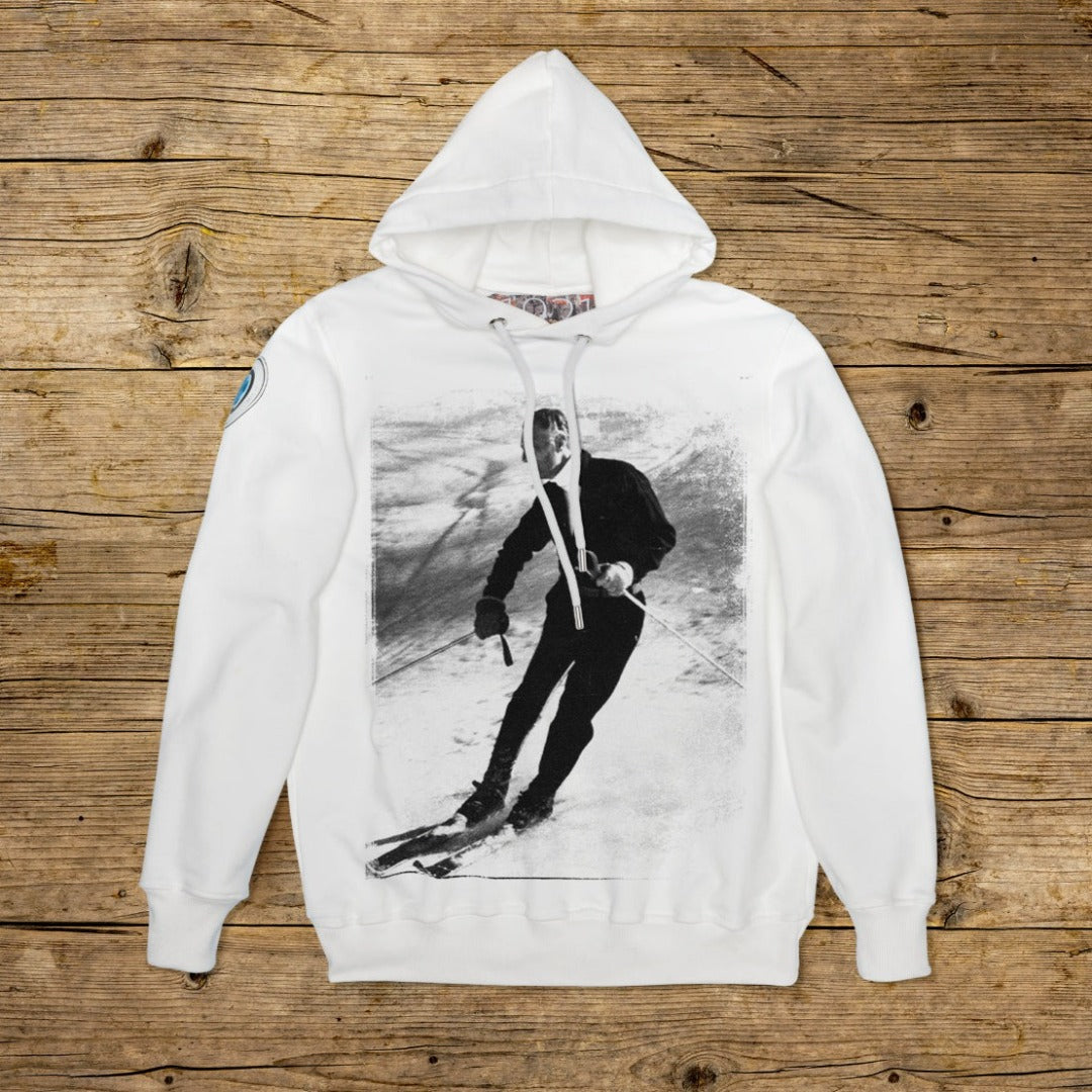 Hanorac cu glugă dublată, cu o croială regulată, realizat din bumbac texturat cu gramaj important, într-o nuanță specială OFF WHITE cu imprimare de înaltă calitate. Articolul este îmbogățit de un PATCH din material microinjectat pe umărul drept, cu logo-ul iconi 1921 și hologramă. Modelul este completat de guler, manșete și talie cu nervuri. O etichetă de mari dimensiuni, jacardată, este aplicată în interiorul gulerului. Ochii de la șireturile glugii sunt din oțel întărit, la fel ca și capetele șiretului personalizat 1921. Fabricat în Italia.