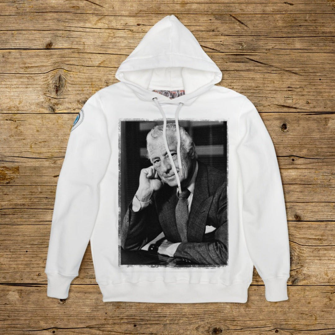 Hanorac cu glugă dublată, cu o croială regulată, realizat din bumbac texturat cu gramaj important, într-o nuanță specială OFF WHITE cu imprimare de înaltă calitate. Articolul este îmbogățit de un PATCH din material microinjectat pe umărul drept, cu logo-ul iconi 1921 și hologramă. Modelul este completat de guler, manșete și talie cu nervuri. O etichetă de mari dimensiuni, jacardată, este aplicată în interiorul gulerului. Ochii de la șireturile glugii sunt din oțel întărit, la fel ca și capetele șiretului personalizat 1921. Fabricat în Italia.