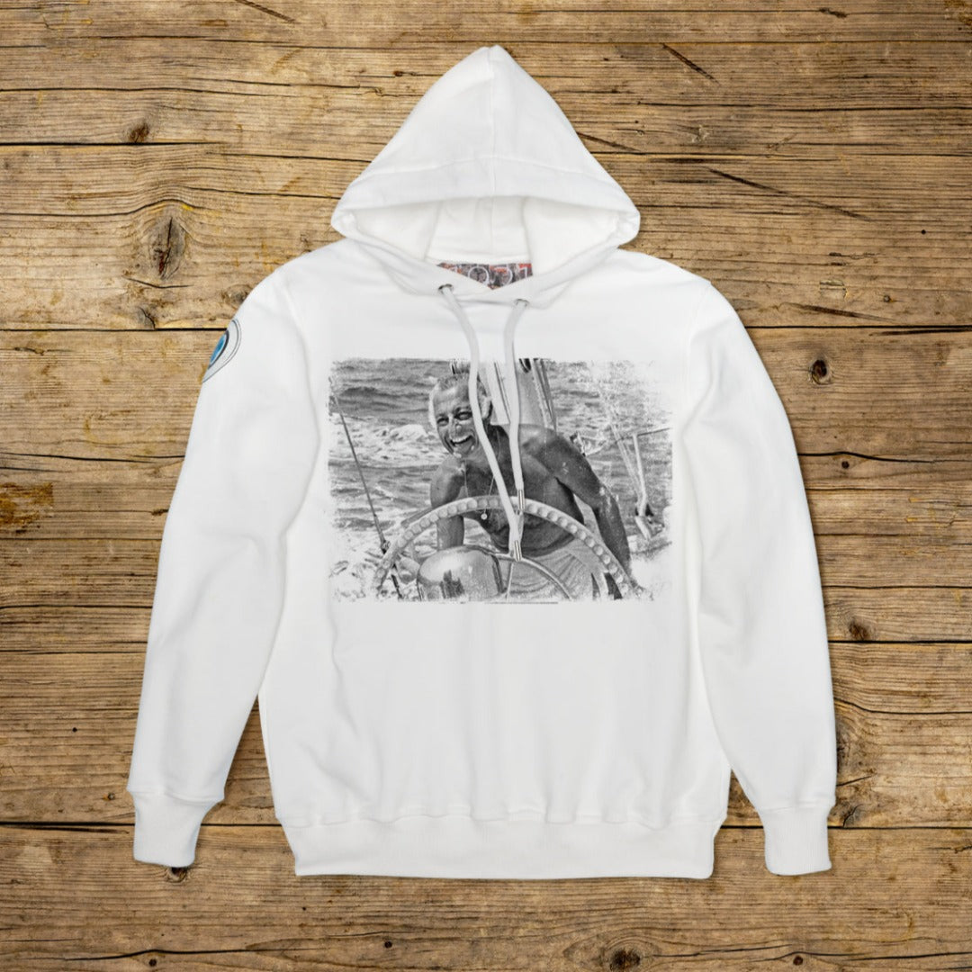 Hanorac cu glugă dublată, cu o croială regulată, realizat din bumbac texturat cu gramaj important, într-o nuanță specială OFF WHITE cu imprimare de înaltă calitate. Articolul este îmbogățit de un PATCH din material microinjectat pe umărul drept, cu logo-ul iconi 1921 și hologramă. Modelul este completat de guler, manșete și talie cu nervuri. O etichetă de mari dimensiuni, jacardată, este aplicată în interiorul gulerului. Ochii de la șireturile glugii sunt din oțel întărit, la fel ca și capetele șiretului personalizat 1921. Fabricat în Italia.