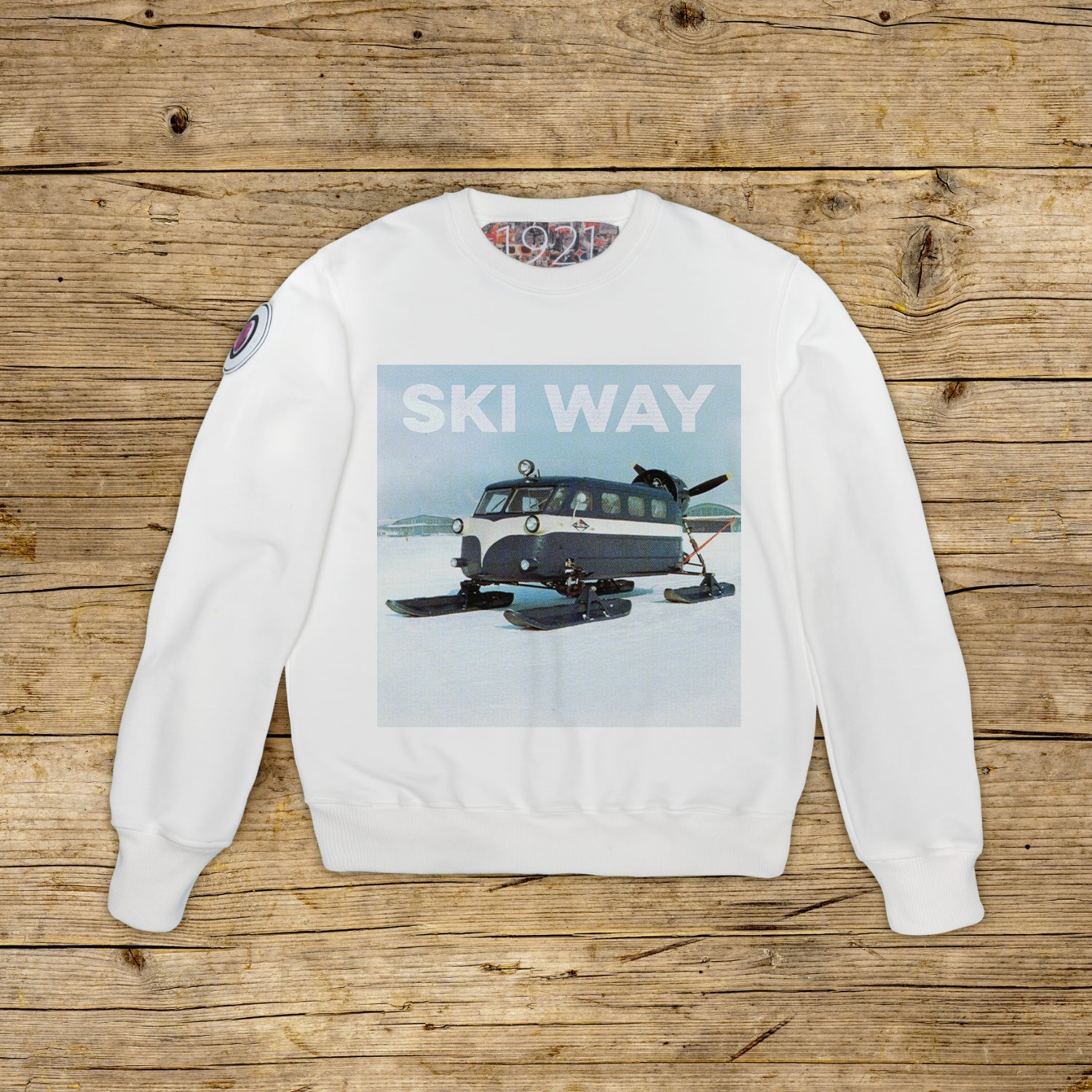 Mikina s okrúhlym výstrihom a pravidelným strihom zo štruktúrovanej bavlny s vyššou gramážou, v charakteristickej farbe OFF WHITE s vysokokvalitnou potlačou. Model zdobí PATCH z mikroinjekčného materiálu na pravом pleci s ikonickým logom 1921 s hologramом. Rebrovaný golier, manžety a spodný lem. Vo vnútri goliera veľký žakárový štítok. Made in Italy.