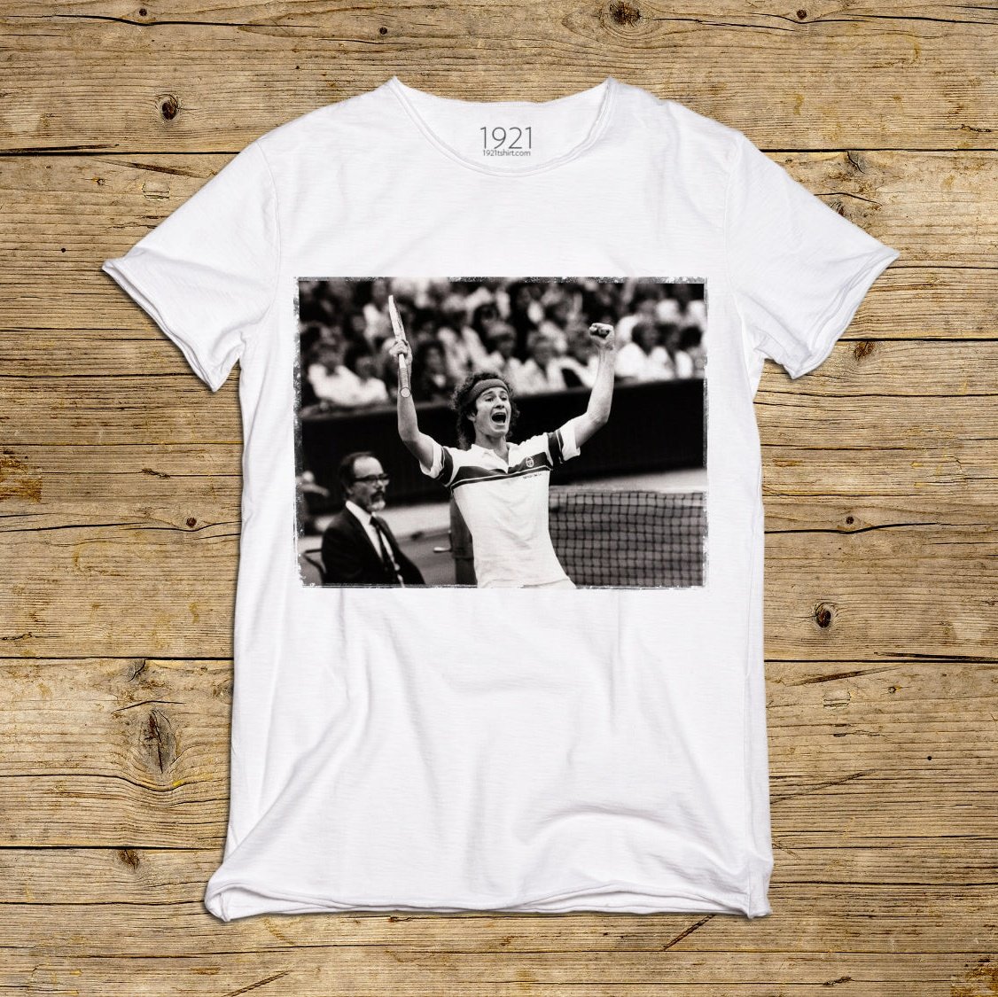 T-shirt majica običajnega kroja iz vrhunskega bombaža. Presenetljivo sveža, z udobnim ovratnim izrezom in okrašena s čudovitim potiskom. Majica je ekskluzivna s posebnimi šivi na ovratniku, rokavih in pasu. Strogo izdelano v Italiji