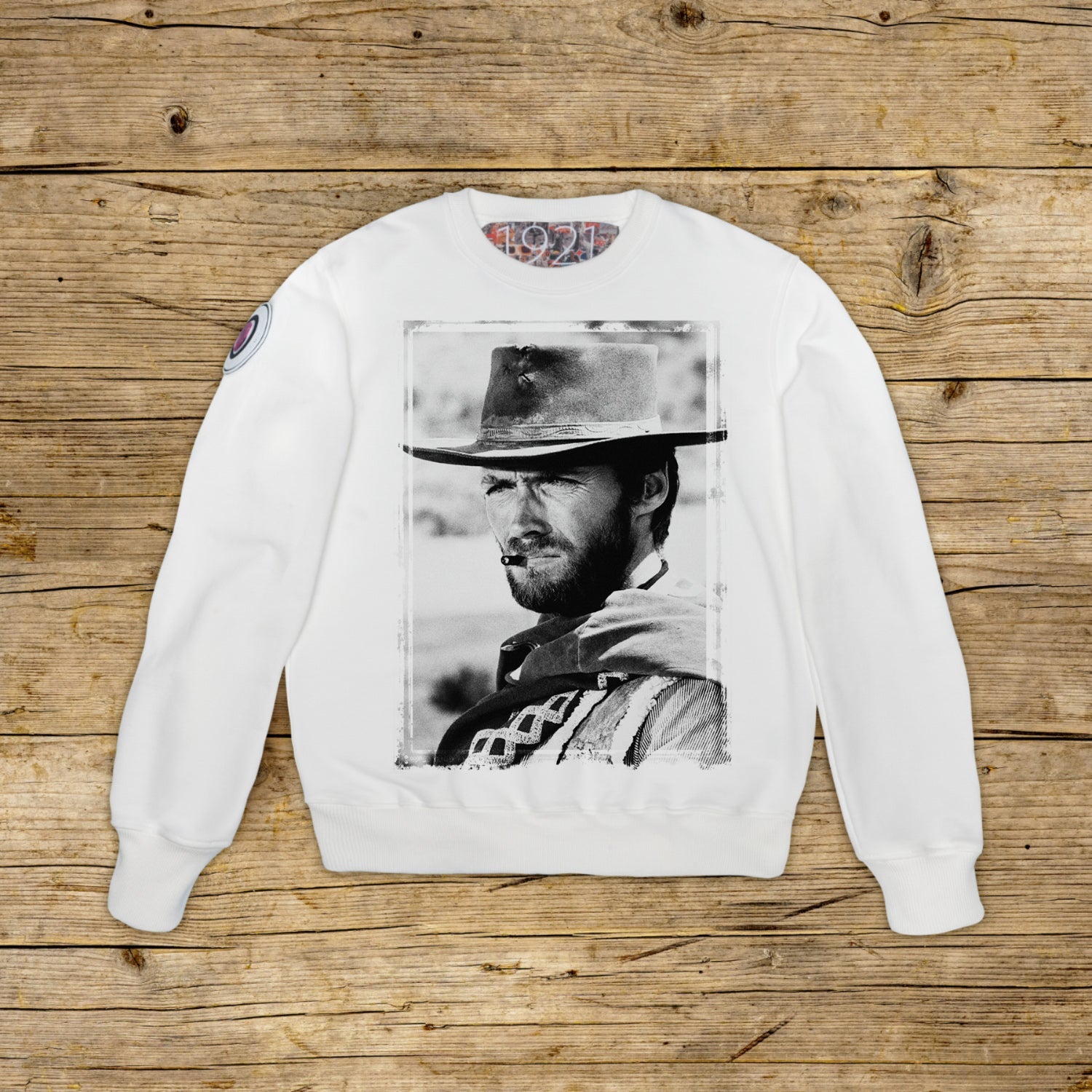 Regular fit pulover z okroglim izrezom iz strukturiranega bombaža z visoko težo, v posebni OFF WHITE barvi z visokokakovostnim tiskom. Oblačilo je na desni rami okrašeno z OBLIŽOM iz materiala za mikrobrizganje, na katerem je ikonični logotip 1921 s hologramom. Model dopolnjujejo rebrasti ovratnik, manšete in pas. Na notranji strani vratu je pritrjena velika žakard etiketa. Strogo izdelano v Italiji.
