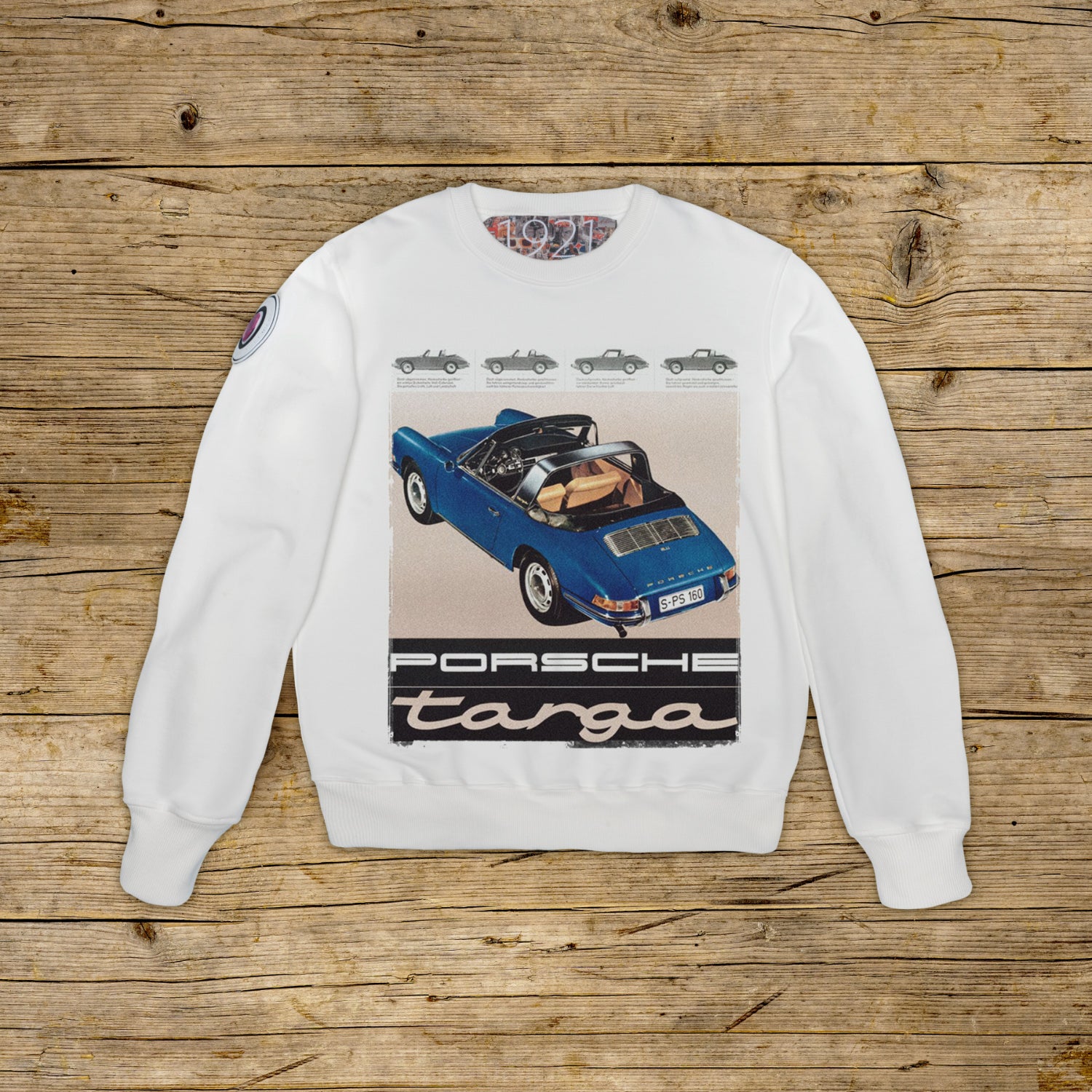 Regular fit pulover z okroglim izrezom iz strukturiranega bombaža z visoko težo, v posebni OFF WHITE barvi z visokokakovostnim tiskom. Oblačilo je na desni rami okrašeno z OBLIŽOM iz materiala za mikrobrizganje, na katerem je ikonični logotip 1921 s hologramom. Model dopolnjujejo rebrasti ovratnik, manšete in pas. Na notranji strani vratu je pritrjena velika žakard etiketa. Strogo izdelano v Italiji.