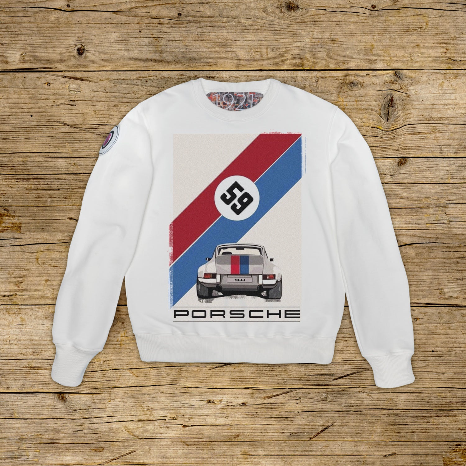 Regular fit pulover z okroglim izrezom iz strukturiranega bombaža z visoko težo, v posebni OFF WHITE barvi z visokokakovostnim tiskom. Oblačilo je na desni rami okrašeno z OBLIŽOM iz materiala za mikrobrizganje, na katerem je ikonični logotip 1921 s hologramom. Model dopolnjujejo rebrasti ovratnik, manšete in pas. Na notranji strani vratu je pritrjena velika žakard etiketa. Strogo izdelano v Italiji.