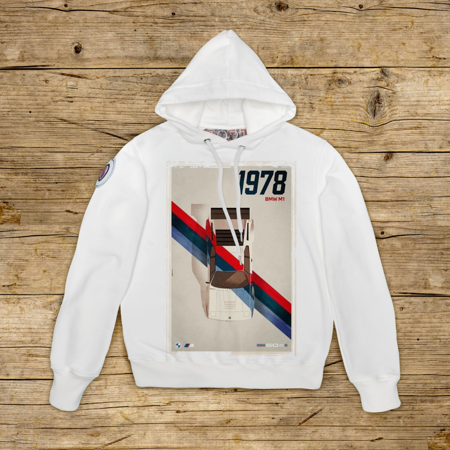 Dvojni pulover s kapuco in navadnim krojem iz strukturiranega bombaža z visoko težo, posebne OFF WHITE barve z visokokakovostnim tiskom. Oblačilo je na desni rami okrašeno z OBLIŽOM iz materiala za mikrobrizganje, na katerem je ikonični logotip 1921 s hologramom. Model dopolnjujejo rebrasti ovratnik, manšete in pas. Na notranji strani vratu je pritrjena velika žakard etiketa. Ušesca veznih palic za pokrov motorja so izdelana iz odebeljenega jekla, kot je tudi konec personalizirane vrvice iz leta 1921. Izdelano izključno v Italiji.