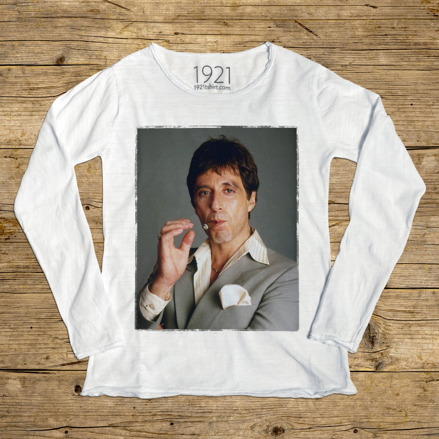 T-shirt me mëngë të gjata dhe përshtatje të rregullt, e realizuar në pambuk të cilësisë së lartë. Jashtëzakonisht e freskët, me një prerje të këndshme të qafës dhe e zbukuruar me një print të bukur. T-shirt-i bëhet ekskluziv me qepje të veçanta në qafë, mëngë dhe bel. Rigorozisht prodhuar në Itali.