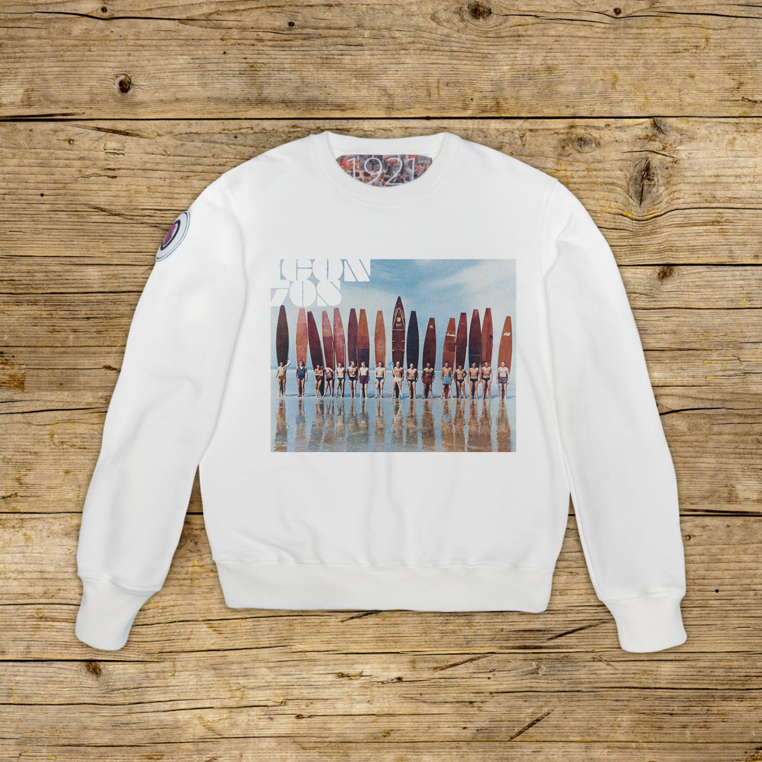 Yüksek kaliteli baskıya sahip, özellikle KİRLİ BEYAZ renkte, ağır yapılı, yapılandırılmış pamuktan yapılmış, normal kesim bisiklet yaka sweatshirt. Giysinin sağ omzunda, hologramlı ikonik 1921 logosunu taşıyan, mikro enjeksiyon malzemesinden yapılmış bir PATCH ile süslenmiştir. Modeli fitilli yaka, manşetler ve bel kısmı tamamlıyor. Yakanın iç kısmına büyük bir jakarlı etiket uygulanmıştır. Tamamen İtalya'da üretilmiştir.